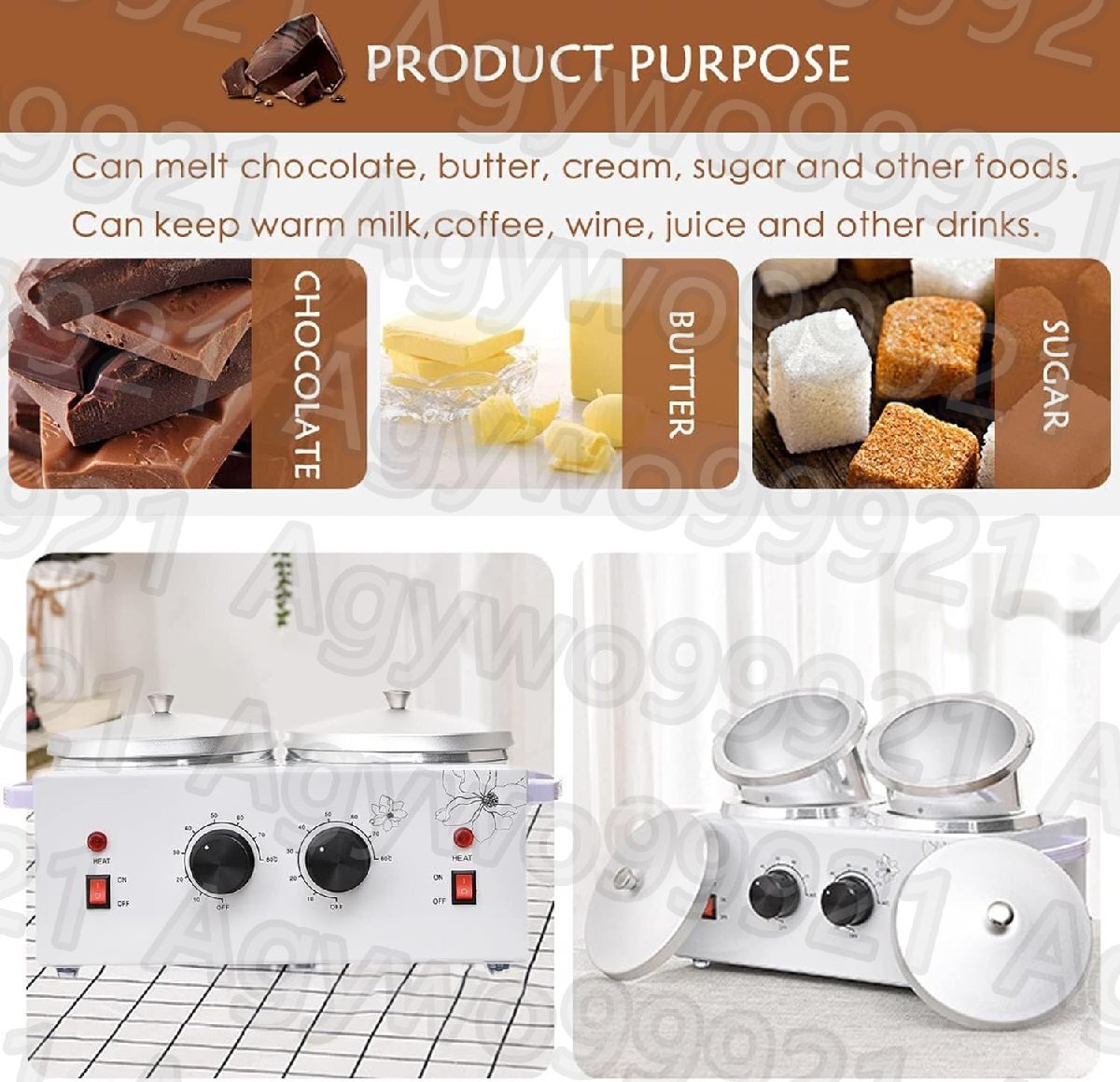 【MORE DIY MELTING】: このチョコレートメルティングマシンは、固形チョコレートをソースに加熱するために使用され、チョコレート、ドーナツ、パンなどをDIYするのに役立ちます。また、コーヒーやミルクを加熱したり、ワックスを溶かして手作り石鹸を作るためにも使用できます。