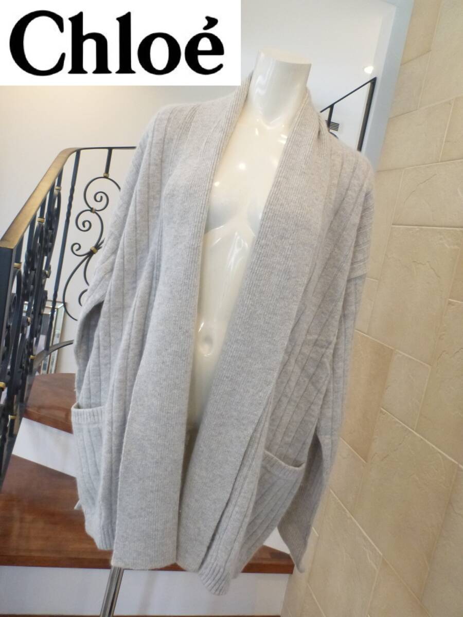 超美品 Chloe(クロエ) ★グレー 厚手 ゆったり ロングカーディガン XL相当 40