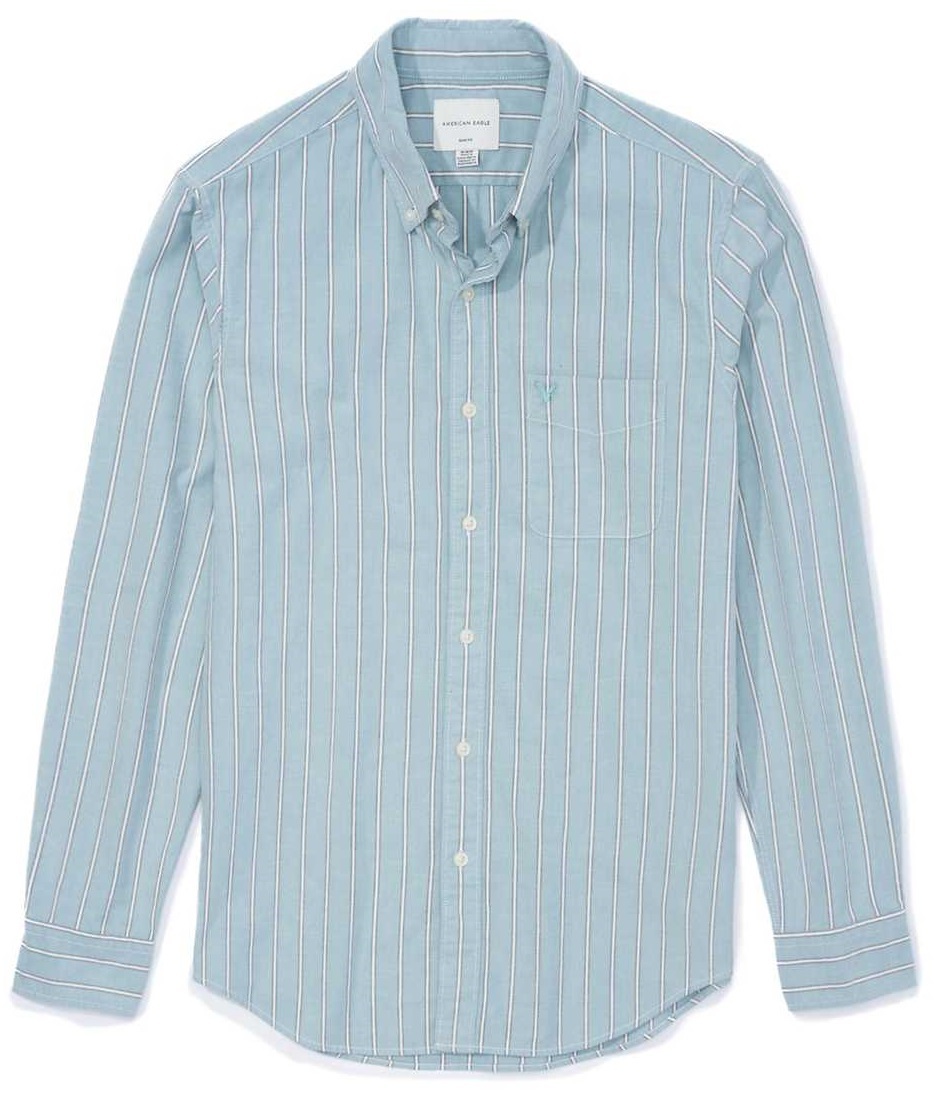 ラスト!!◇◆AE/アメリカンイーグル / AE ストライプ オックスフォード ボタンアップシャツ / US L / ティール /胸元ロゴ /