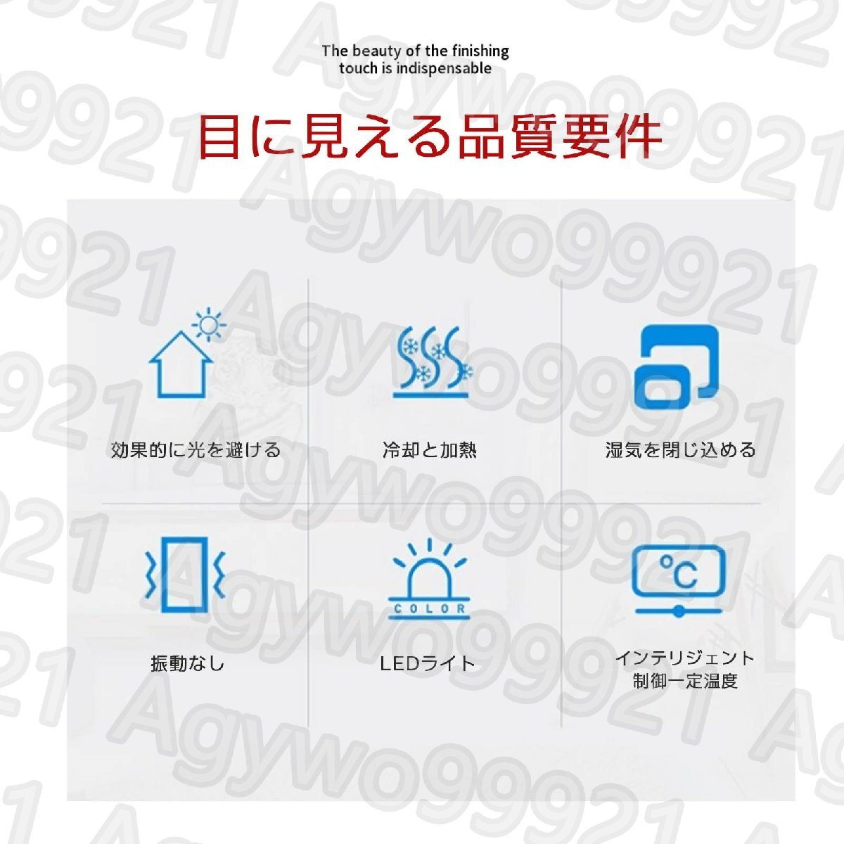 【人間化されたデザイン】:金属製の引き出し棚のデザインは分解が簡単です エレガントな色調で明るく目にも楽しい寒色系LEDライトの省エネ・省電力組み立て 底部排水設計により換気が可能となり、凝縮水の排出を促進します。 空気循環によりキャビネット内に一定量の酸素が維持されます。二重層の強化ガラスドアにより一定の温度が保証され、観察が容易になります。各セットはガラス規格に従って木製フレームに入れて発送されます。