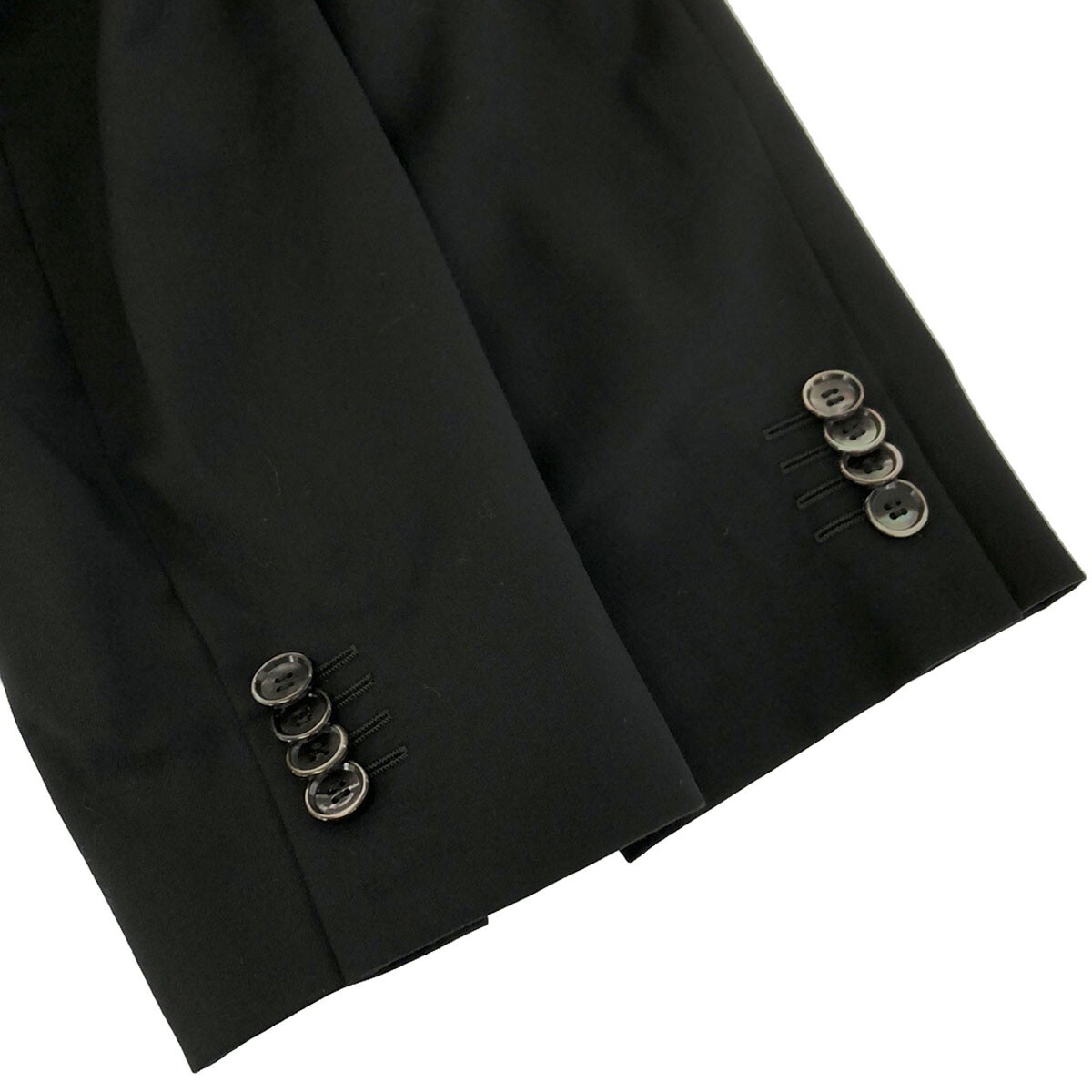 ジャケット左肩後に虫食い穴、袖口裏地に黄ばみ汚れ、スラックスに数箇所傷、所々に白い薄汚れがございます。