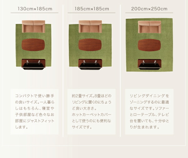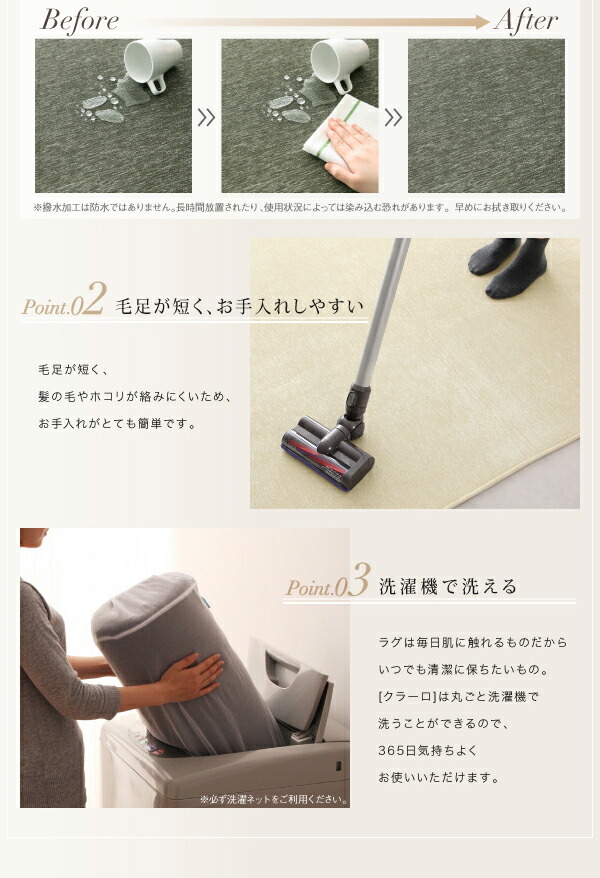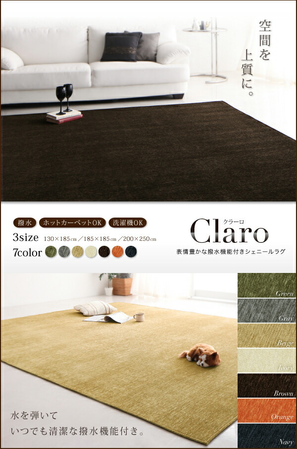 表情豊かな撥水機能付きシェニールラグ claro クラーロ 200×250cm【メインカラー:グリーン】です。