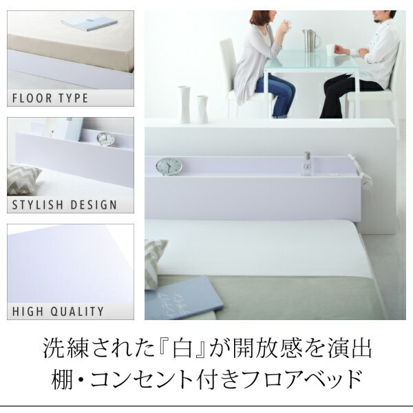 組立設置付き 棚・コンセント付きフロアベッド IDEAL アイディール スタンダードボンネルコイルマットレス付き セミダブル【フレームカラー:ホワイト】【マットレスカラー:ホワイト】です。