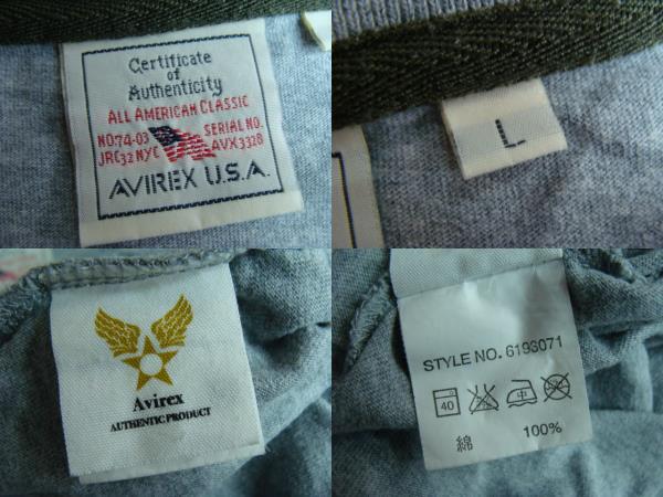 AVIREX アヴィレックス 胸ポケ ワッペン付き Tシャツ グレー (L) | |||||||||||