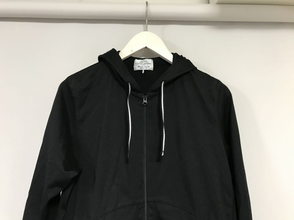 商品名:本物ユナイテッドアローズUNITEDARROWSジップ長袖TシャツロンTパーカーメンズサーフアメカジミリタリーモードスーツ黒ブラックS日本製