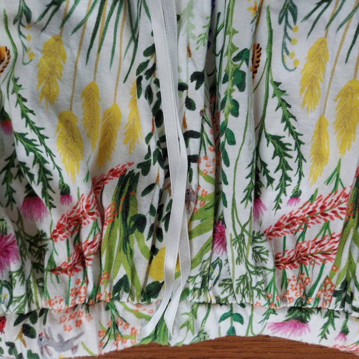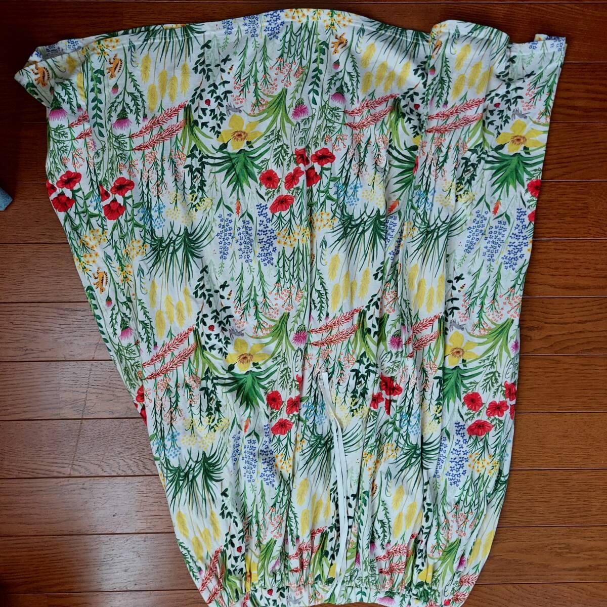 W62cm(総ゴム使い) 丈76cm 裏地なし 自宅保管のためノークレーム、ノーキャンセルでお願いいたします。
