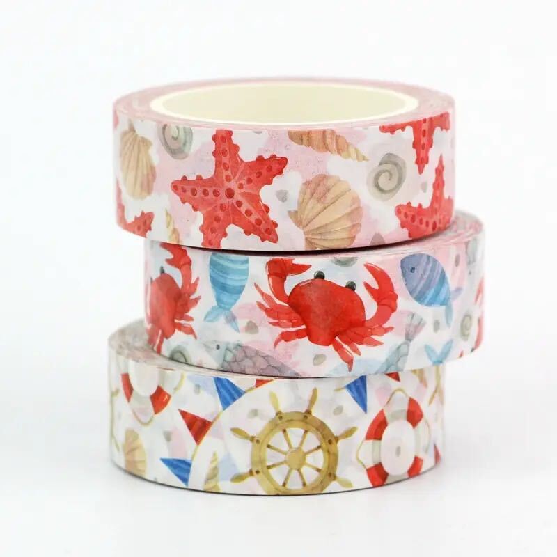 ヒトデとカニのテープは茶色の芯ですので、あらかじめご了承ください。
