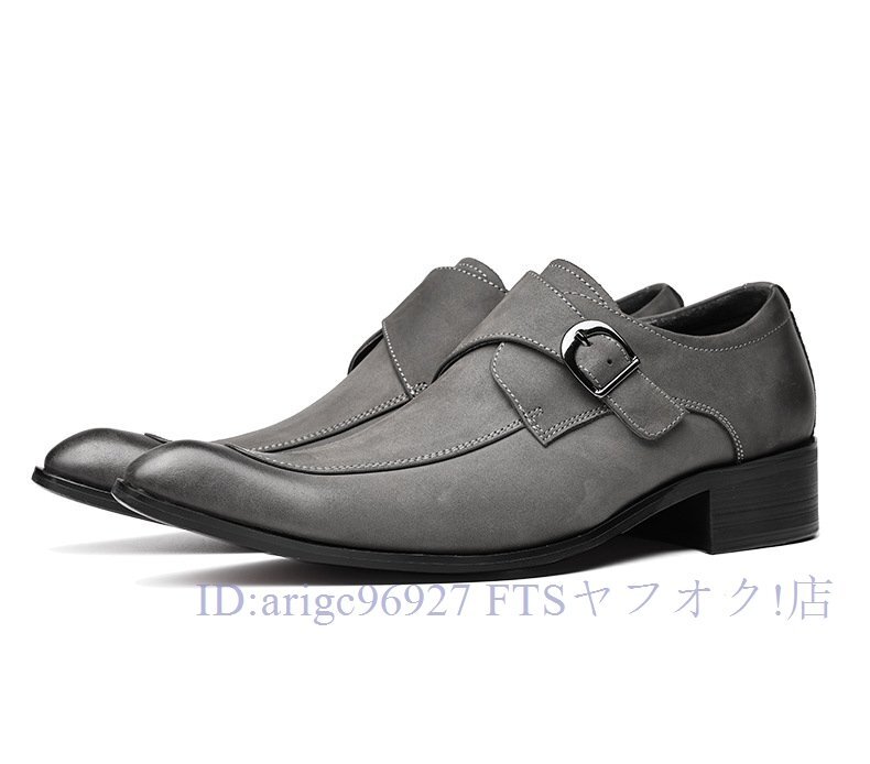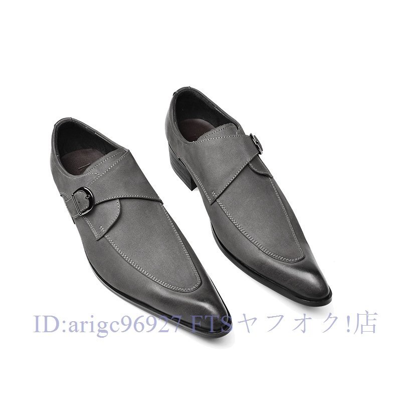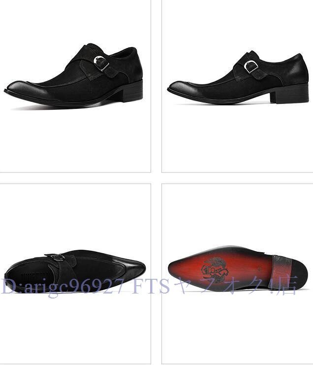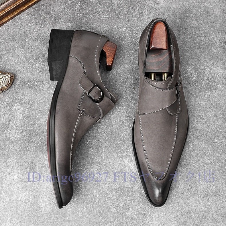 B2189☆新品ビジネスシューズ レザーシューズ 職人手作り モンクストラップ 本革 メンズシューズ 最高級バックル ロングノーズ24~27cm