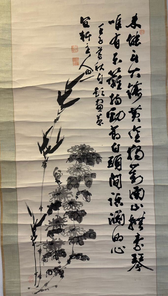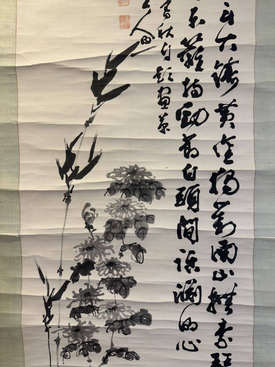 【真作】西岡「字画図」 古い掛け軸(掛軸) 肉筆 紙本 中国画 中国美術 美術品 画芯サイズ約131*54cm 箱なし