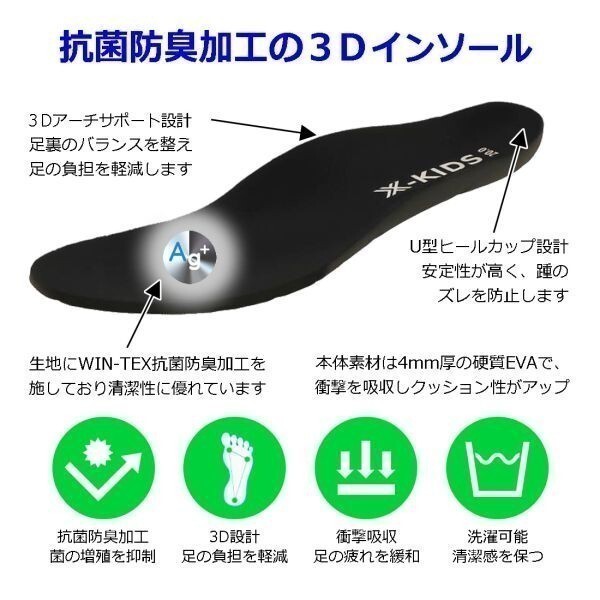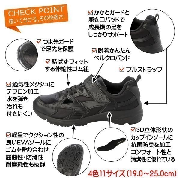 24869 新品 キッズ スニーカー 黒 ブラック 22.0cm 運動靴 スクールシューズ テフロン撥水加工 抗菌 防臭 防滑底 軽量 男の子 女の子