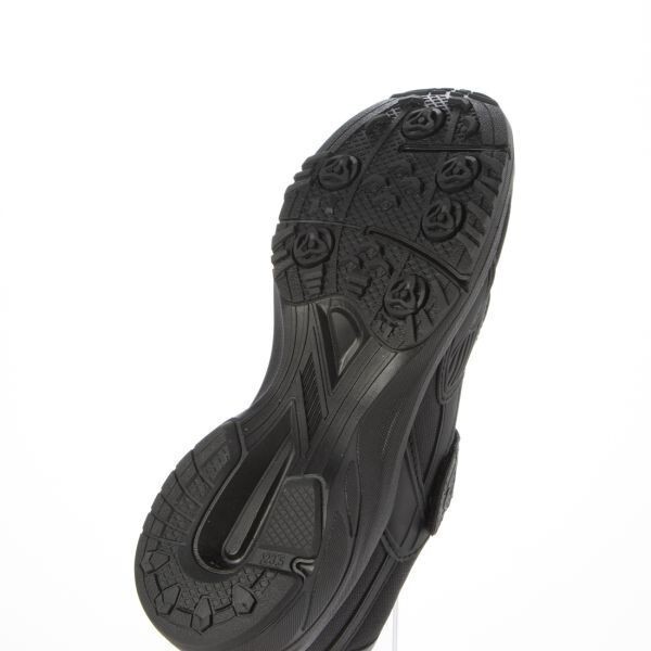 ベルクロバンドとプルストラップの組み合わせで脱ぎ履きがしやすく、伸縮性ゴム紐で紐を結ぶこと無くジャストフィット。