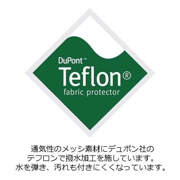通気性の良い甲メッシュはテフロン撥水加工を施しているので水や汚れにも強く、快適に使用できます。