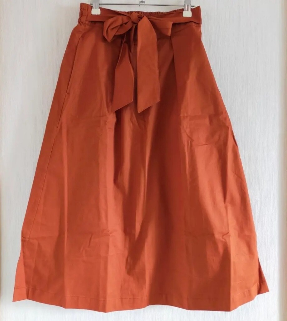 ウエストマークした共地リボンが、メリハリ付けしてくれるスカート。