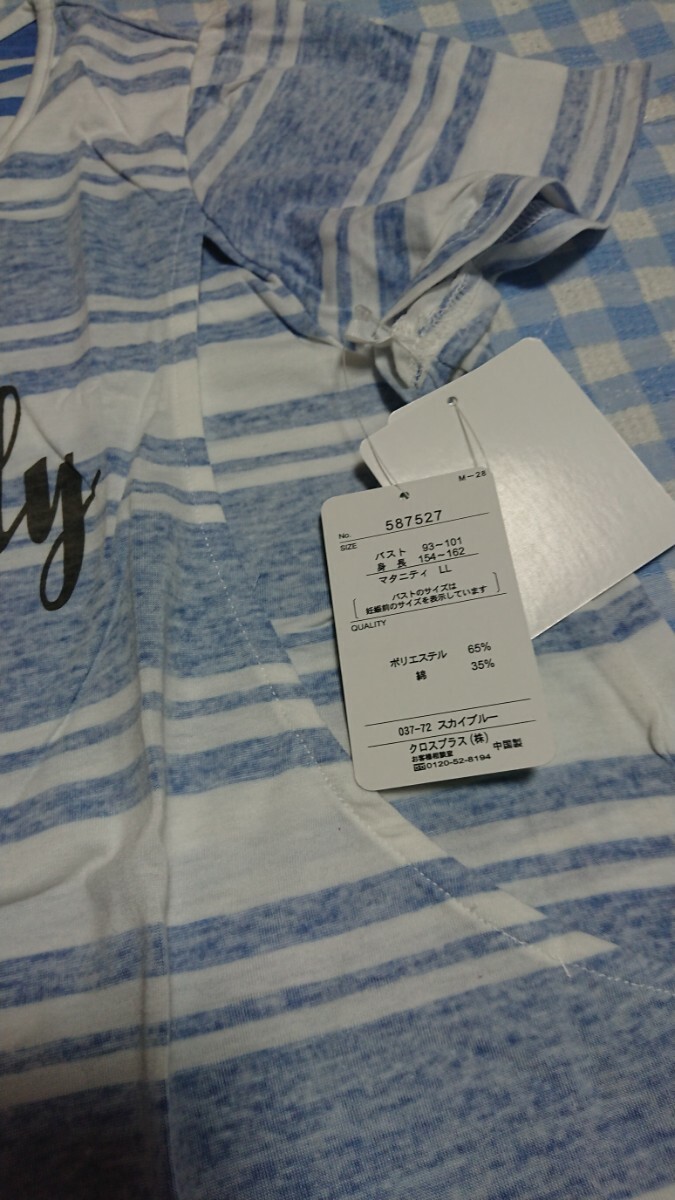@427☆未使用・保管品☆授乳服☆前絞り半袖カットソー 青М