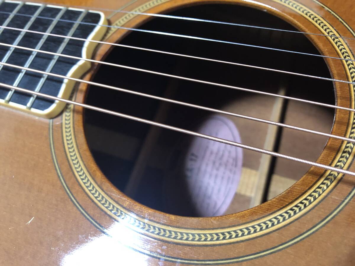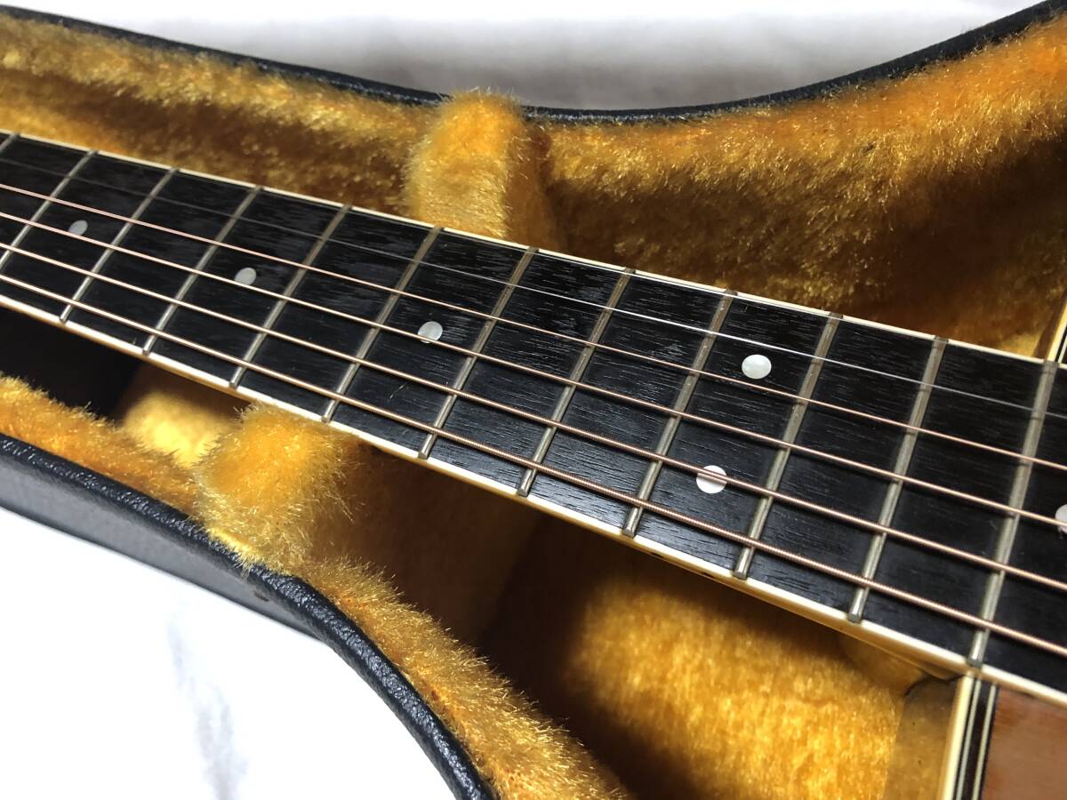 ボディトップ膨らみなし、ナット幅43ミリ、ナットブリッジ素材不明、ロッド不明、ネックやや順反り。