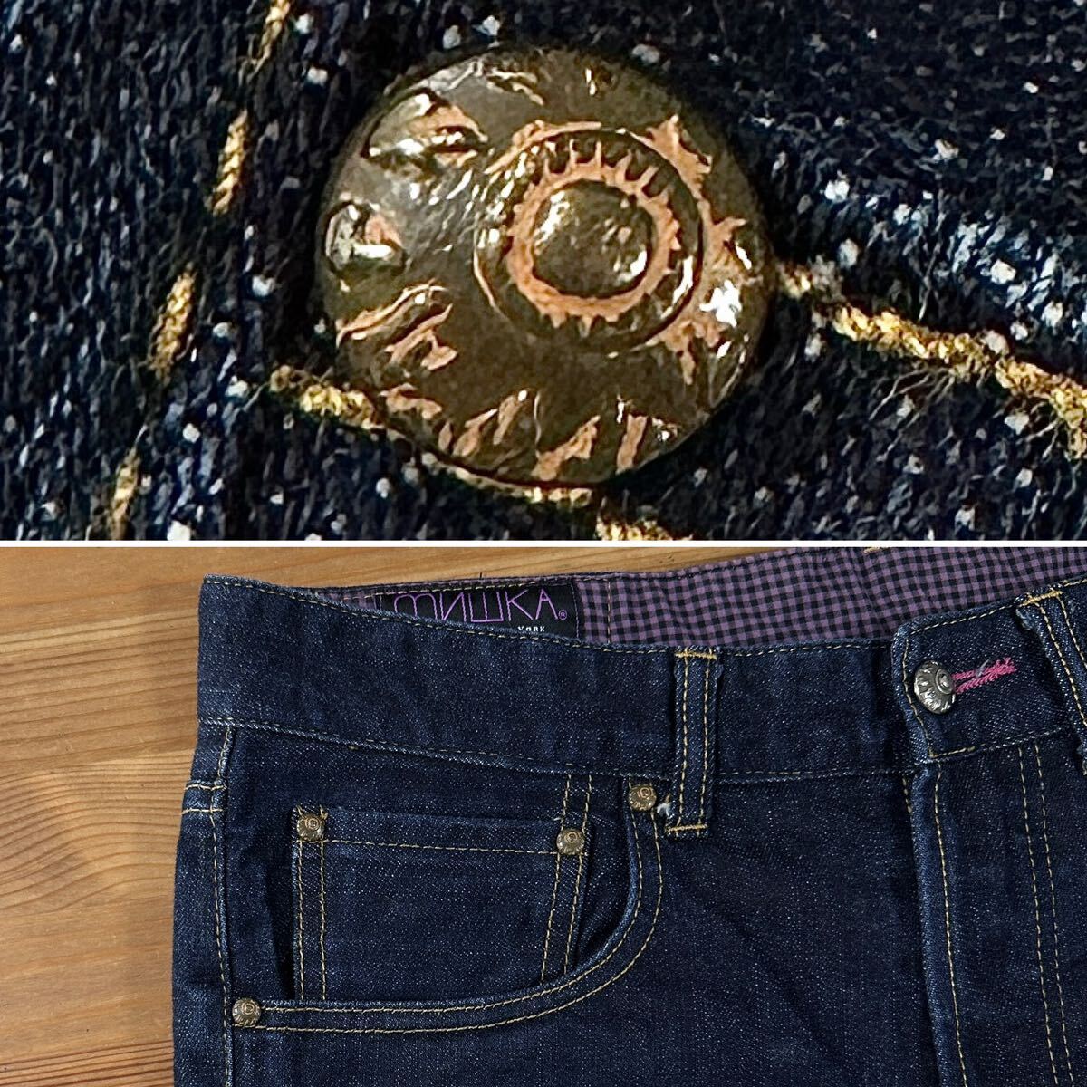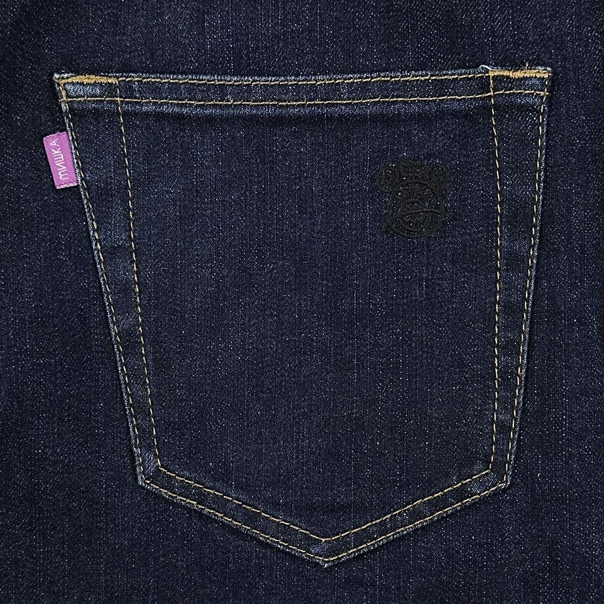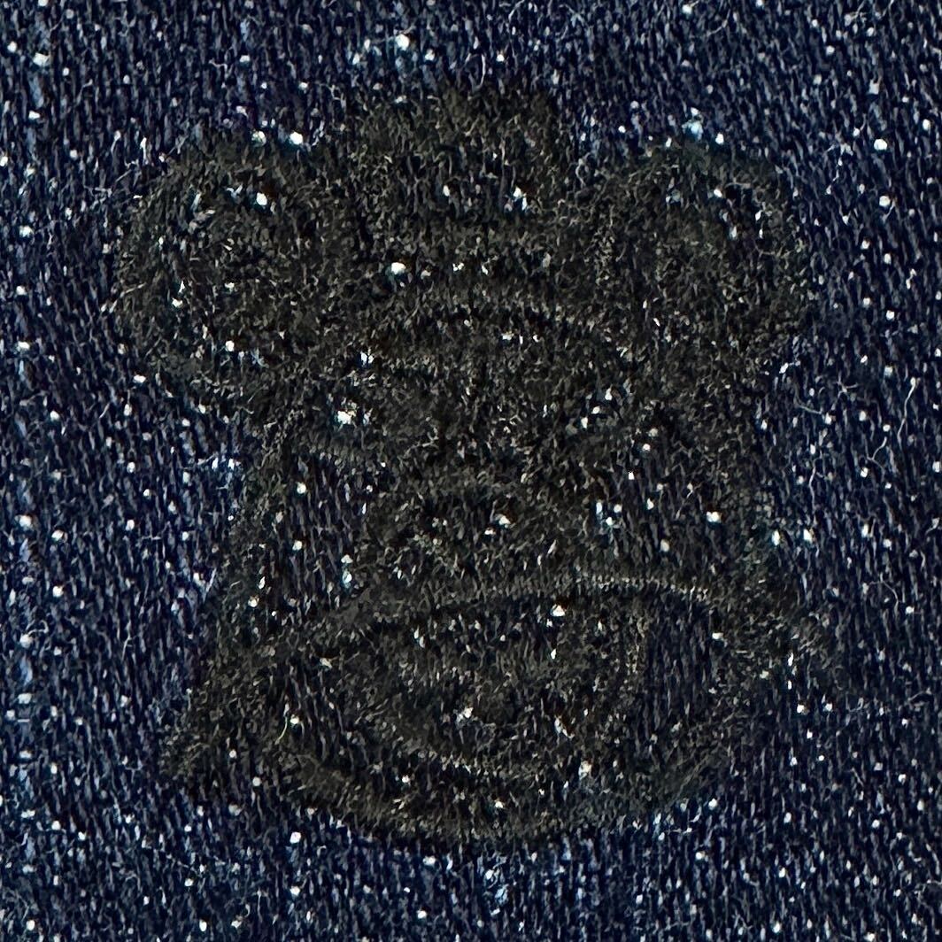 ☆ストレッチ素材を使用した伸縮性のある穿き心地。バックにはクマデザインの刺繍やロゴパッチ、ピスネームを配置。更にリベットやフロントボタンには目玉デザインをあしらった細部までこだわったディテールも魅力です!