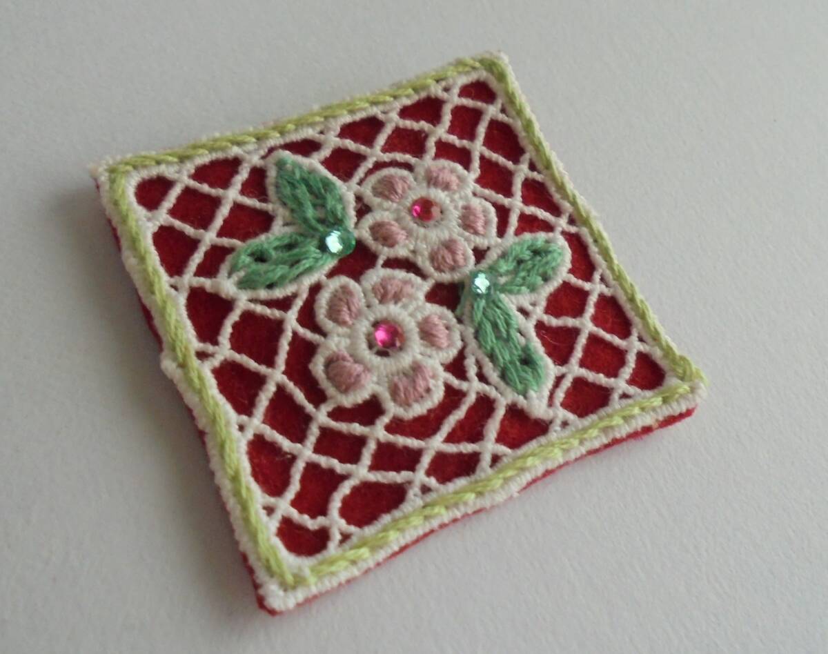 ハンドメイド ブローチ  お花  ケミカルモチーフに刺繍  高分子結晶ストーン