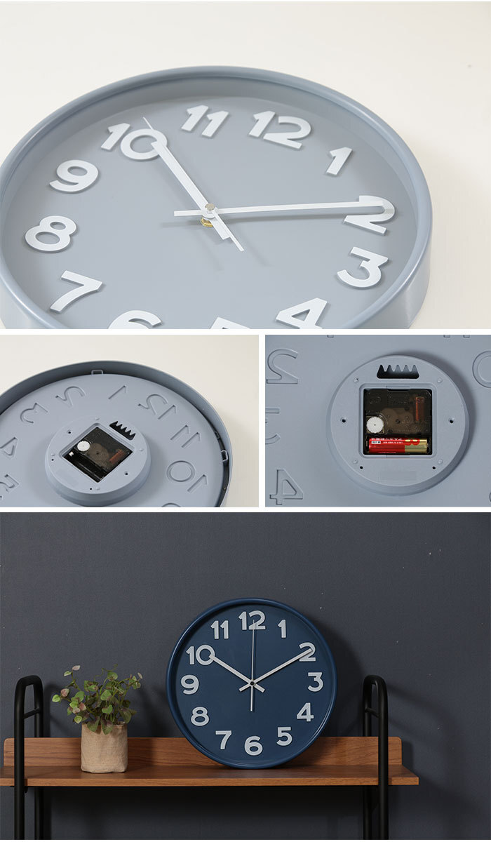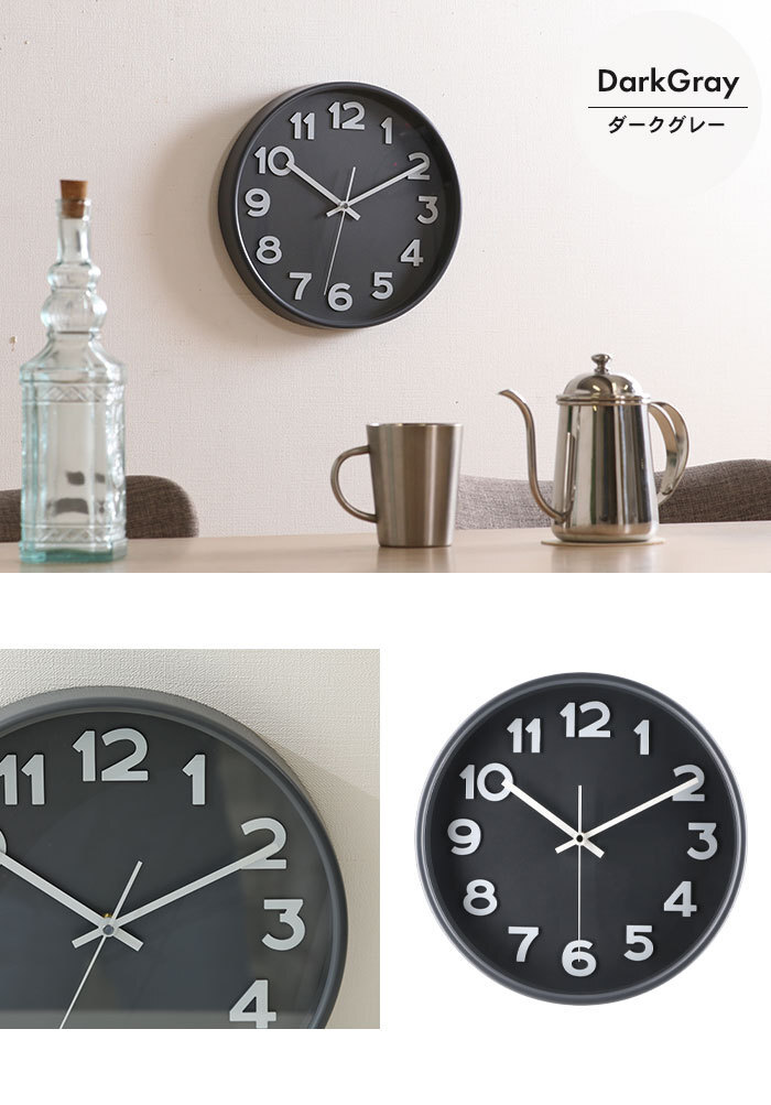 無駄な装飾のないシンプルな掛け時計です。 直径30cmの少し大きめのサイズはリビングなどの家族が集まる場所にピッタリです。 文字盤を滑るように静かに動くスイープムーブメントを使用しておりますので音が気になる方にオススメです。 |