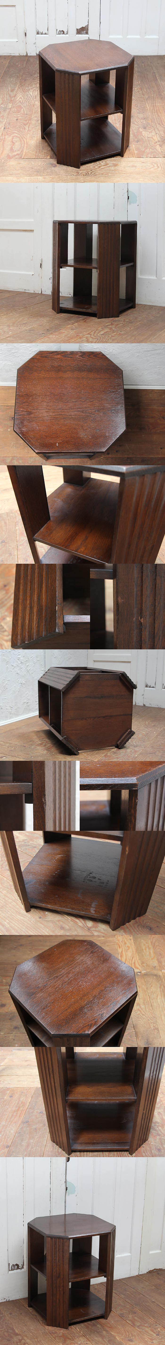 イギリス アンティーク オーク サイドテーブル 飾り台 本棚 収納家具「八角形テーブル」P-456