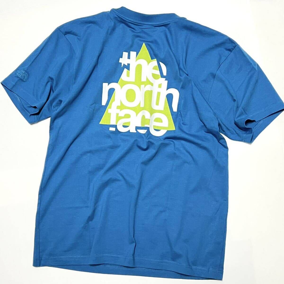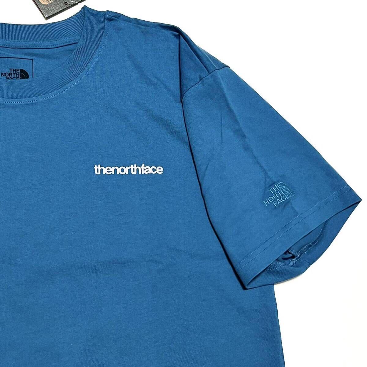 S 新品 海外限定 並列ロゴ ノースフェイス オーバーサイズ Tシャツ ブルー 半袖 ロゴT バックロゴ TEE ショートスリーブ ターコイズ