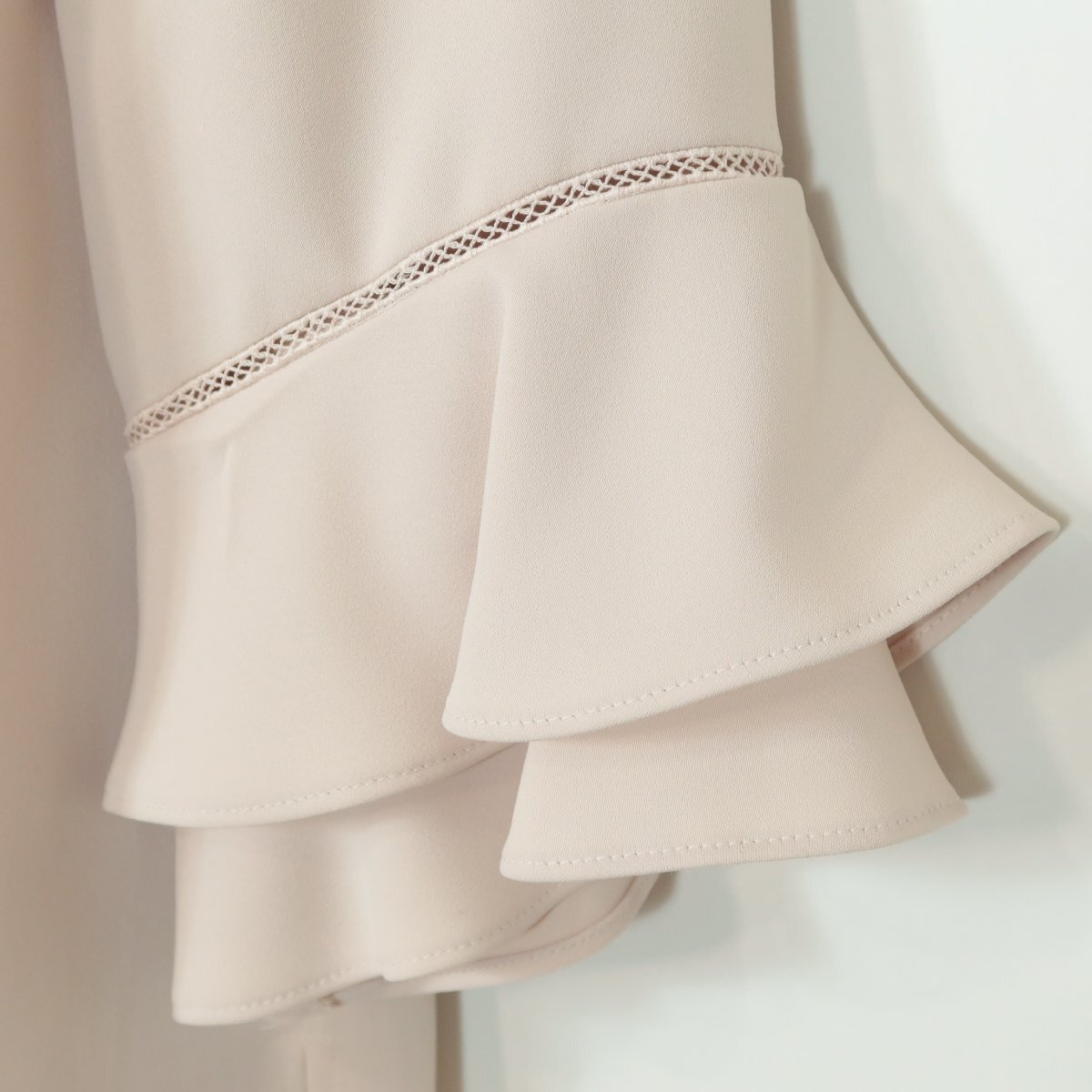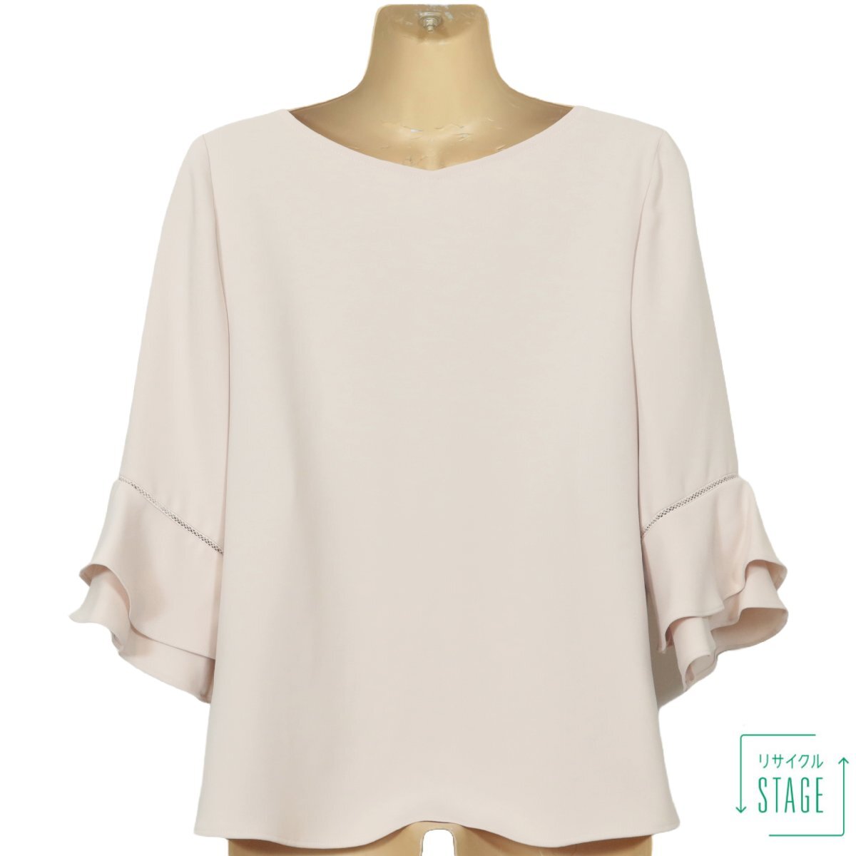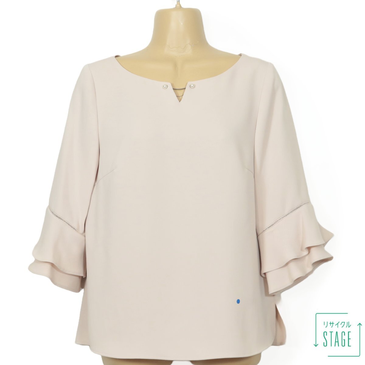 apuweiser riche ★ プルオーバー ブラウス パール調ボタン アクセサリー風♪ 七分袖 重ねフリル袖 サイズ2 ベージュ系 z7804