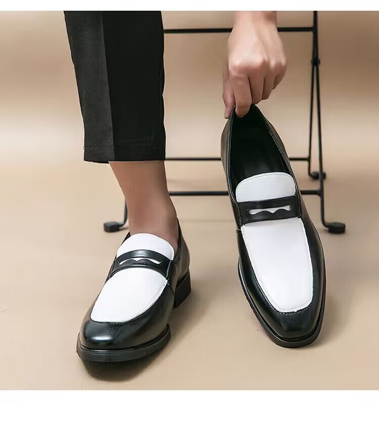 ★NEW★メンズ TG21601-27.5cm/45 ビジネスシューズ ブラック&ホワイト(4色) クラシカル おしゃれ レトロ UK風 ローファー 紳士 結婚式