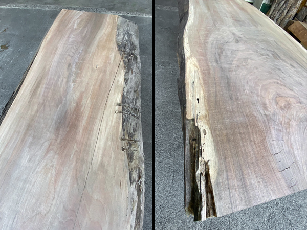 | 【注意】 | ・天然木・無垢・一枚板の端材ため、反り、逆目、割れ、虫食い、ヒビ、ねじれ、 腐り部分がある場合があります。 ・色・木目が板ごとに異なります。 風合い・味としてお楽しみください。 ・ひび割れ・節・汚れ・細かな傷や白太は写真で ご確認ください。 (アップで撮影しています) ・諸々ご理解いただける方のみお願いします。 ・一枚板の特性として、運送中多少の反りやひび割れ等入る場合も有ります。 あと、ご自宅に設置後数日~数週間で多少の反りやひび割れ等入る場合も 有ります。 ・ノークレーム・ノーリターンでお願い致します。 |