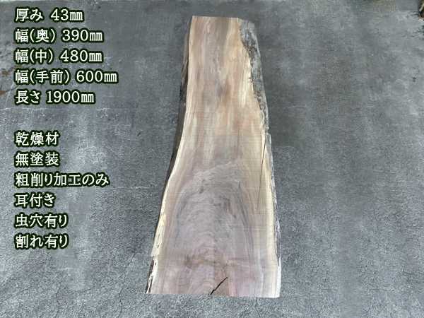 | 【商品名/樹種】 | 未使用 ☆ ウォールナット 無垢乾燥材-荒削り加工済み 一枚 |