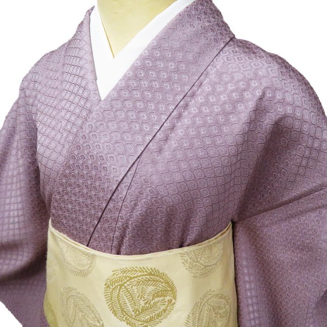 丈156cm(+9) 裄63cm(+6) 袖丈46.5cm(+6.5) 前幅24cm 後幅29cm ※サイズのお直し、承ります。 (身丈のみ、身幅のみのお直しは承っておりません) ※身丈は肩から測っております。 ※()内はおおよそのお直しいただける長さです。胴裏の長さ等によって()内の長さ通りお直しできない場合があります。 単位:cm 素材 正絹 商品ランク B ●着用時期 10月~5月(+-2週間) ●着用シーン 結婚式、披露宴、パーティー、お出掛け、お茶会、式典など ●お色 薄色 右襟裏に点汚れがございますが、他は綺麗で、まだまだご着用いただけるお品物です。 写真に写っている着物のみの販売で、小物等の付属品はついておりません。 一部商品は実店舗・他サイトでも並行して販売しておりますので売り切れの際はご了承ください。 その他多数販売中 o- | ||||||