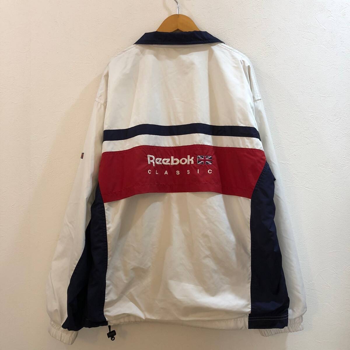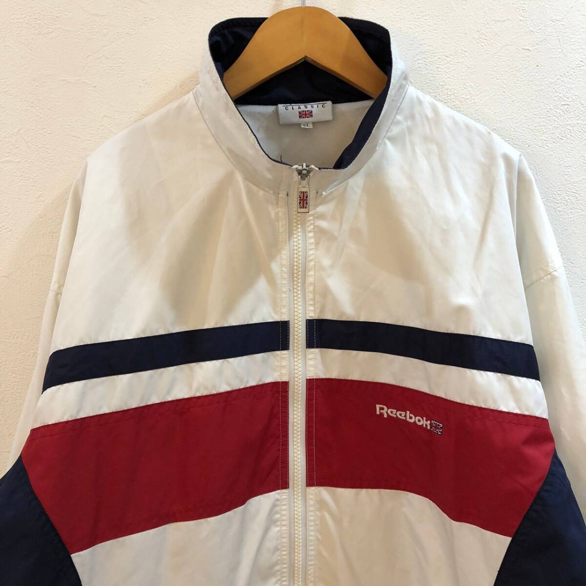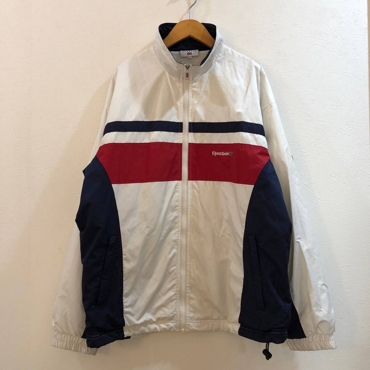 商品: Reebok/リーボック 長袖ジップアップナイロンジャケット ホワイト ネイビー メンズ LL