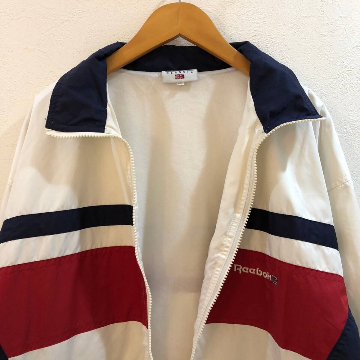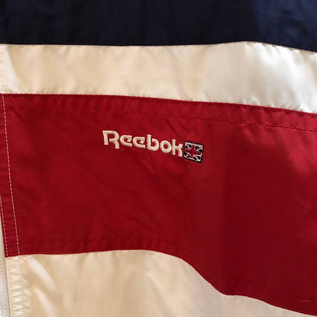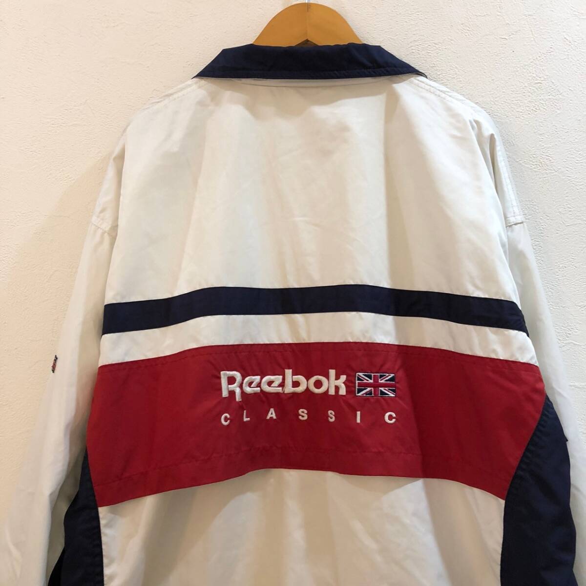 商品: Reebok/リーボック 長袖ジップアップナイロンジャケット ホワイト ネイビー メンズ LL