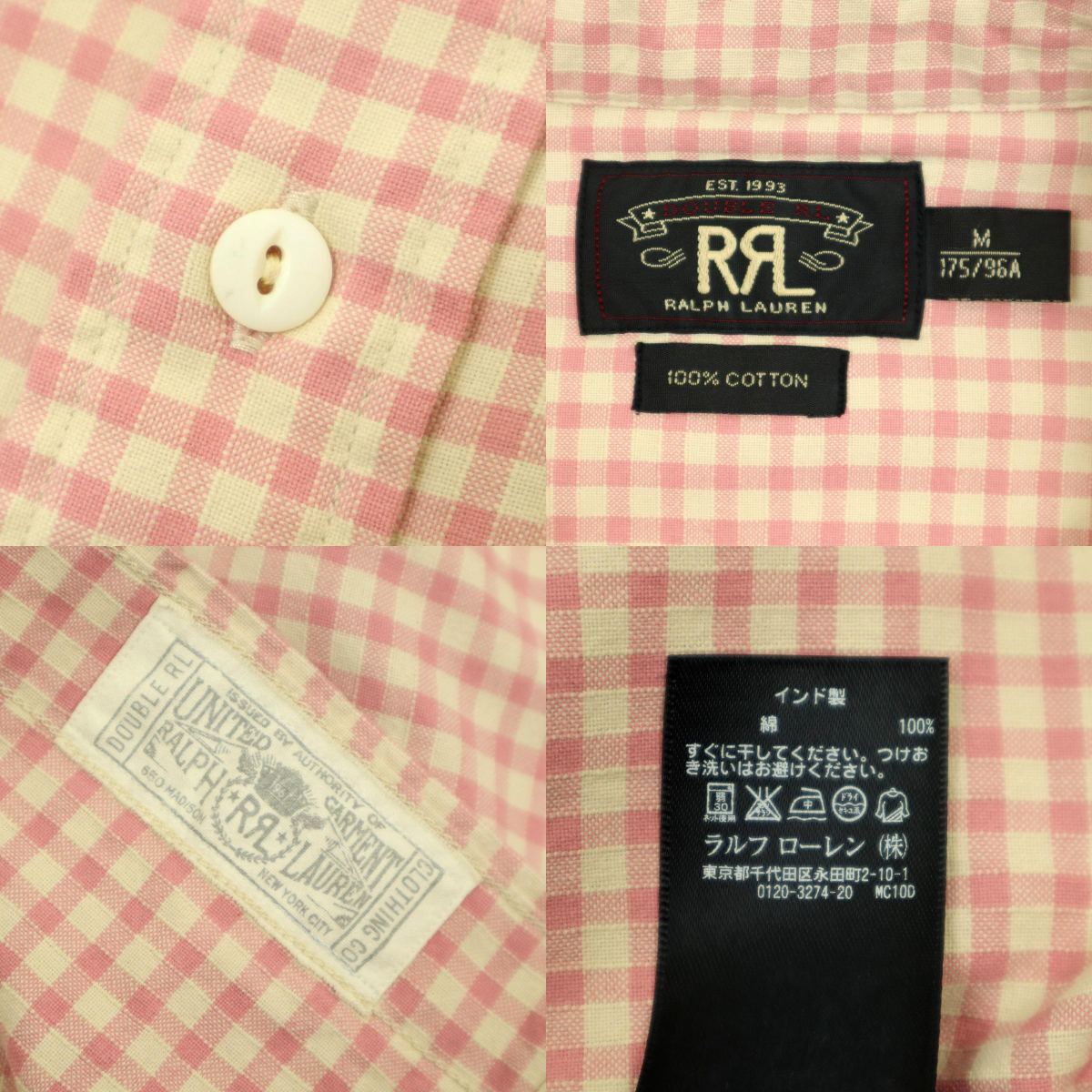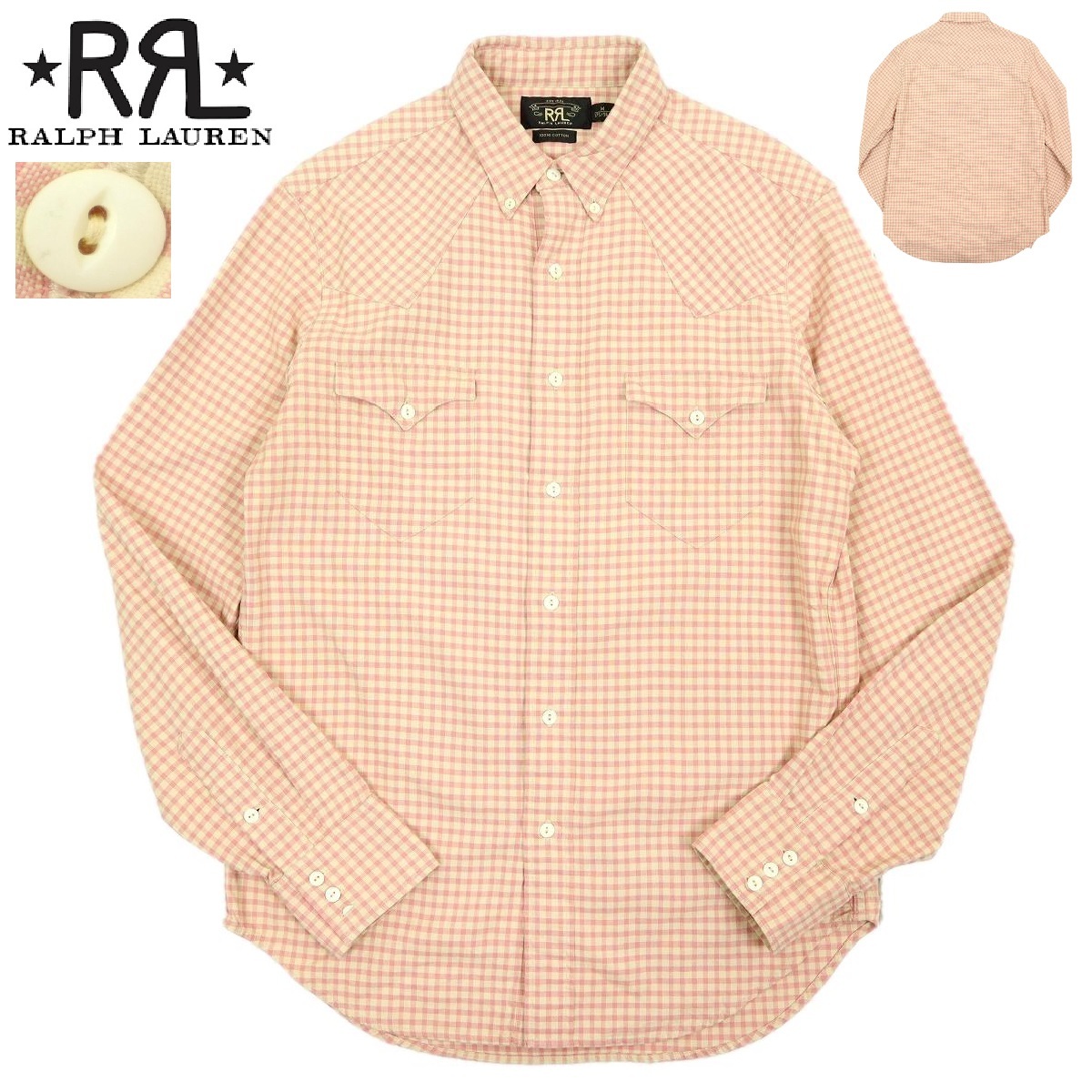 | ブランド名:RRL サイズ:M 肩幅:45.5cm 身幅:56cm 袖丈:68.5cm 着丈:78.5cm 裄丈:-cm 色 :ピンク×ベージュ 状態:多少使用感はございますが、比較的綺麗なお品物です(写真でご確認ください) ※状態の確認は慎重に行っておりますが、僅かな薄汚れや、キズ、糸飛びなどがある場合がございます、古着(中古品)にご理解いただける方のみ入札お願いいたします |