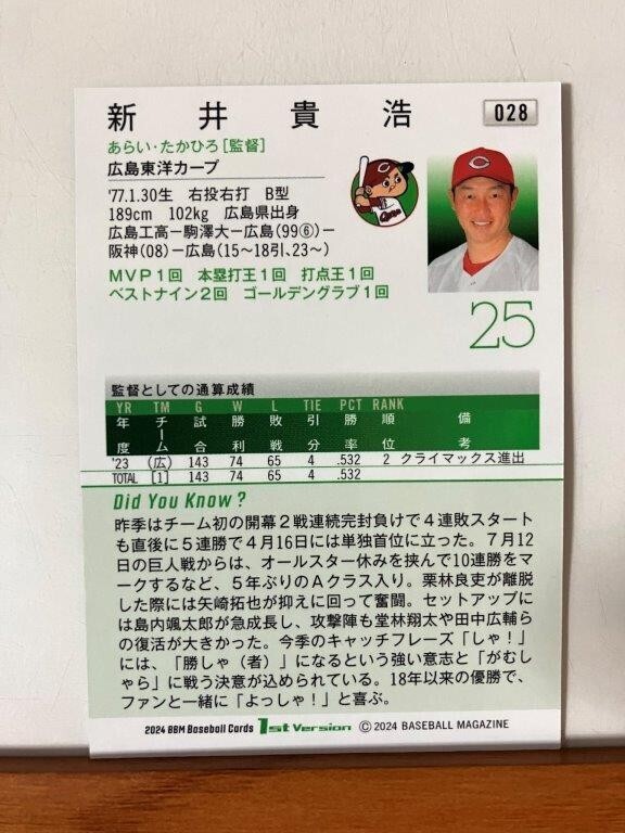 【2024 BBM 1st】028新井貴浩(広島東洋カープ)レギュラーカード