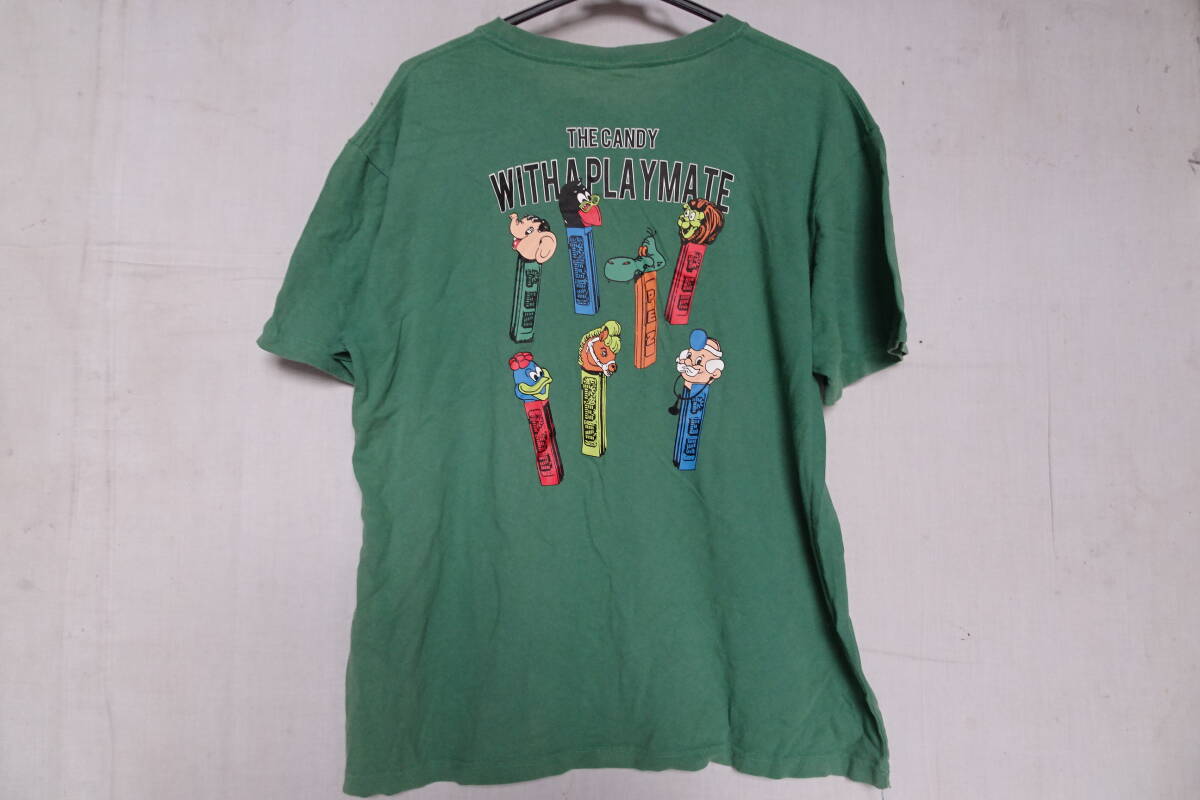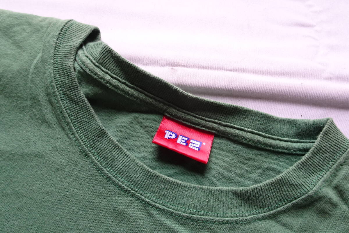 PEZ/ペッツ/半袖Tシャツ/ロゴししゅう/バックプリント/お菓子/キャンディー/ディスペンサ/緑/グリーン/Lサイズ(6/4R)