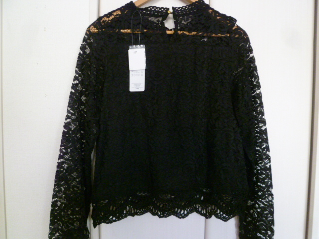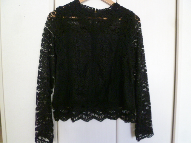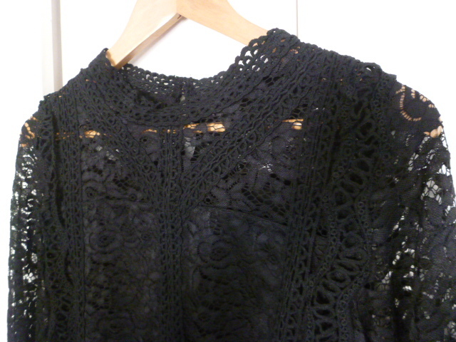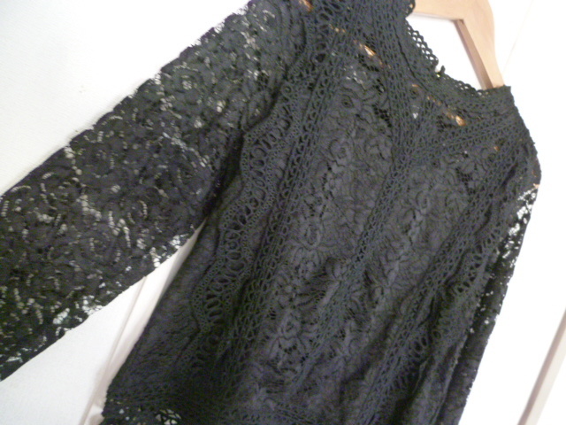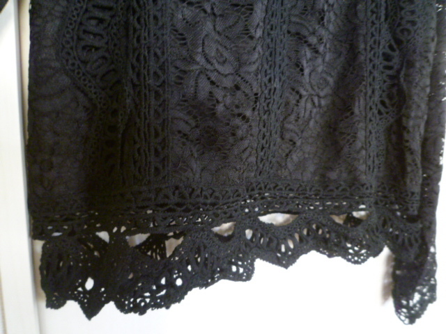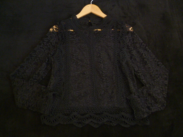 【新品】Sureve◇黒総レースフリルブラウスカットソーL/ブラック長袖トップスゴシック系◇A75tp