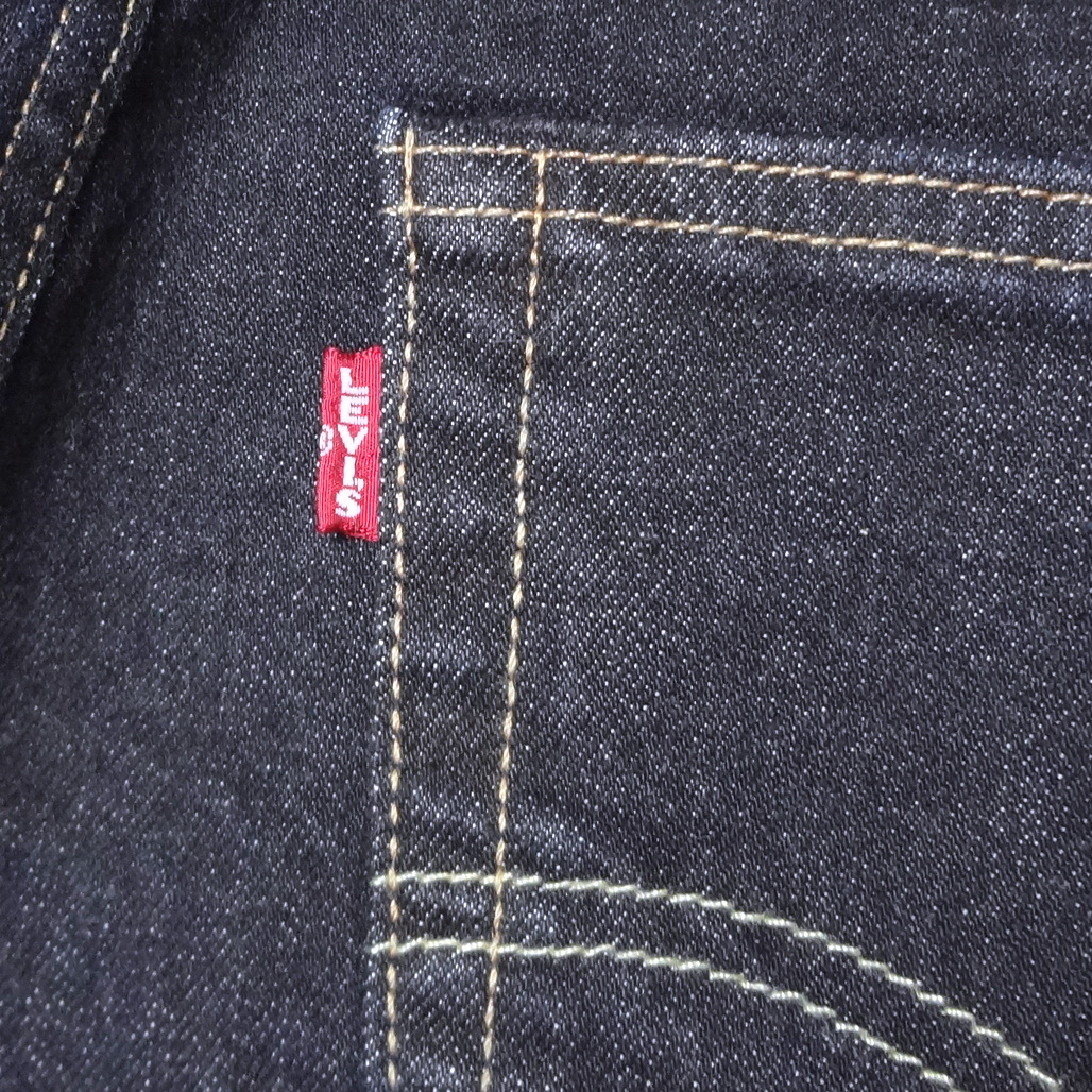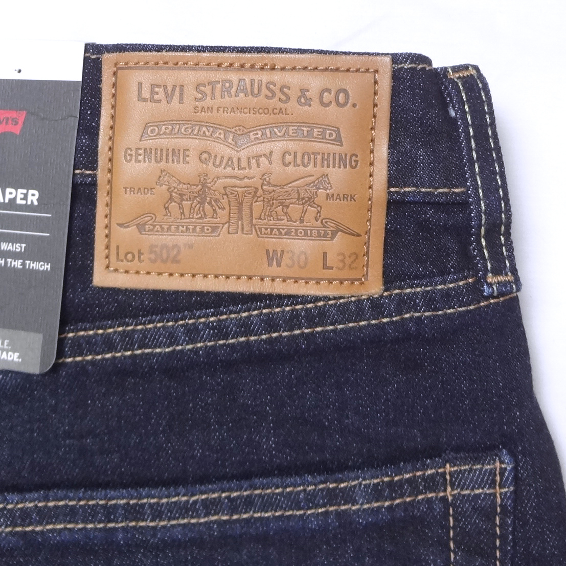 リーバイスの502ストレッチデニムジーンズ、素材/綿99%ポリウレタン1%、パッチ牛革、ダークインディゴブルー