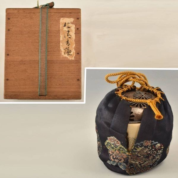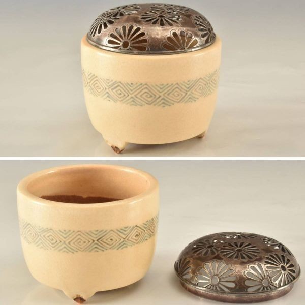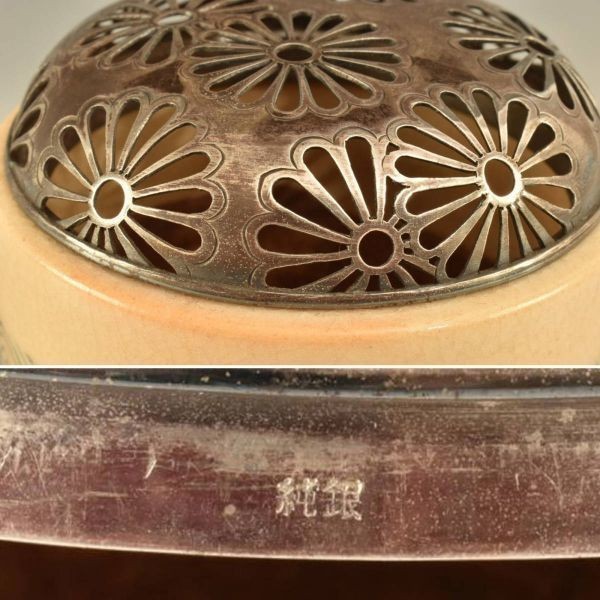 状態:大体良好。ほや袴部分に「純銀」の刻印あり。仕服傷み多々あり。京焼。