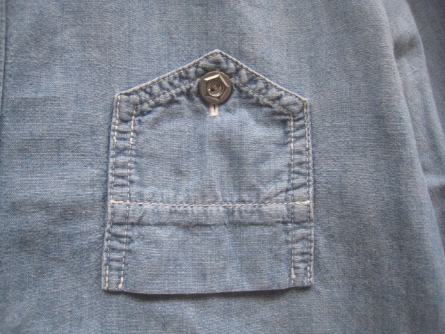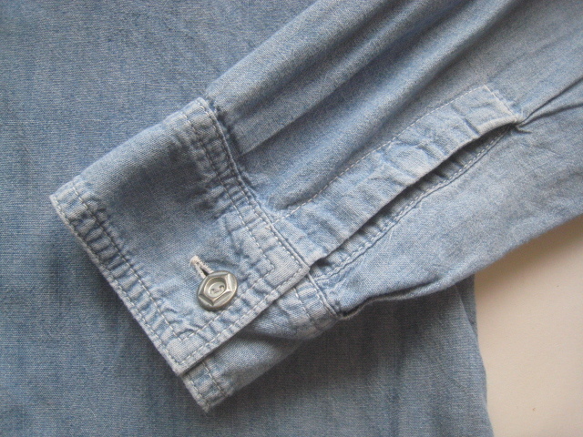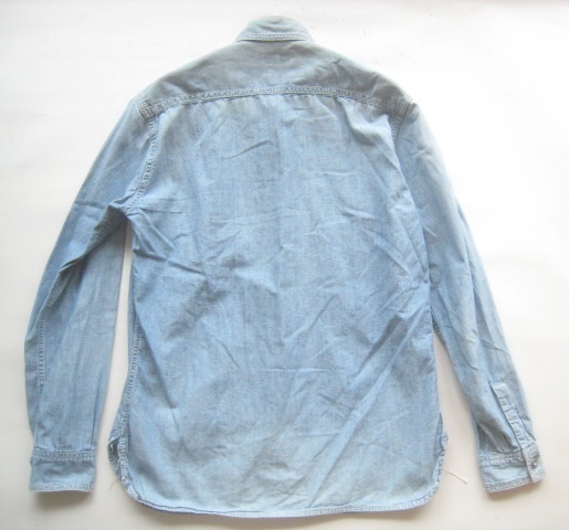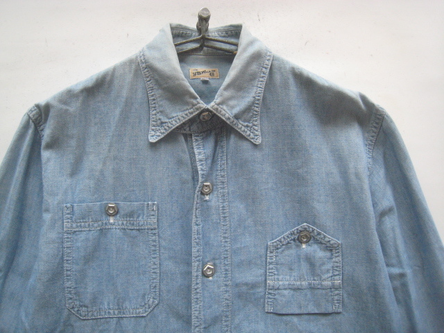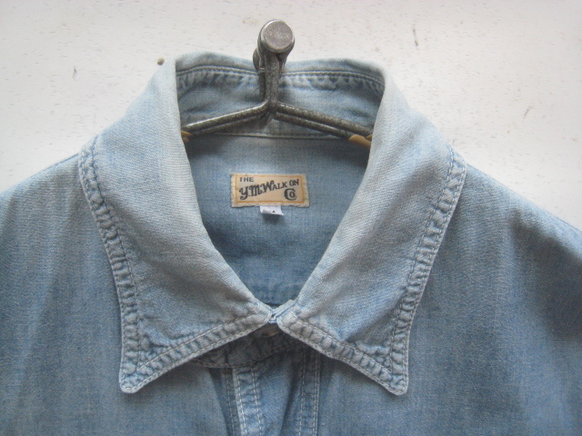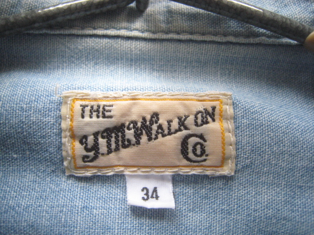 高級日本製!!ウォークオン THE Y.M.WALK ON*チンスト 山ポケット付き インディゴデニムワークシャツ 34 実寸XS