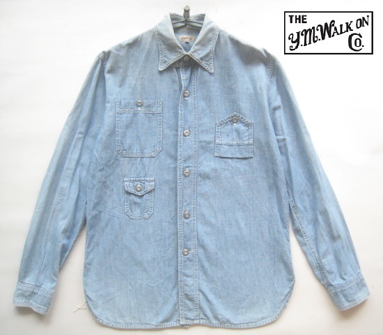 高級日本製!! THE Y.M.WALK ON チンスト・山ポケット付き インディゴデニムワークシャツ