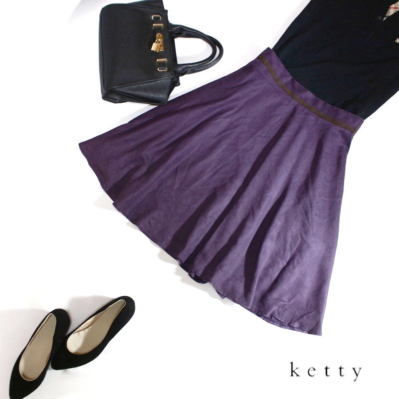 美品 ケティ Ketty ■ 秋 大人綺麗 ダークカラー 膝下丈 Aライン 上品 スエードタッチ フレアスカート S 1 7号 パープル 合物