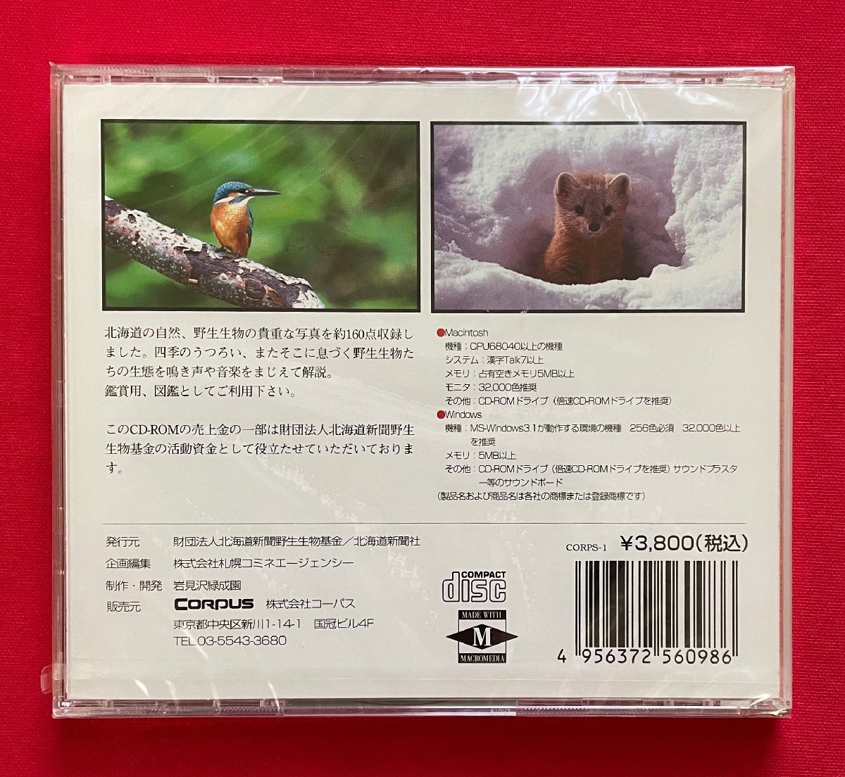 CD-ROM 北海道の野生動物 For Macintosh & Windows Hibrid CORPS-1 未開封品 当時モノ 希少 C1950