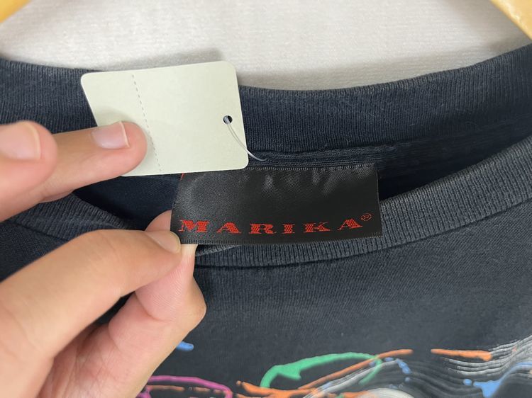 グッドプリントUSA製ビンテージMARIKA半袖クルーネックプリントTシャツL相当ブラック100綿アメカジストリートnr23968
