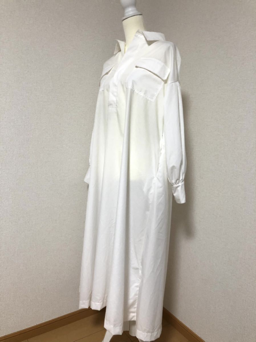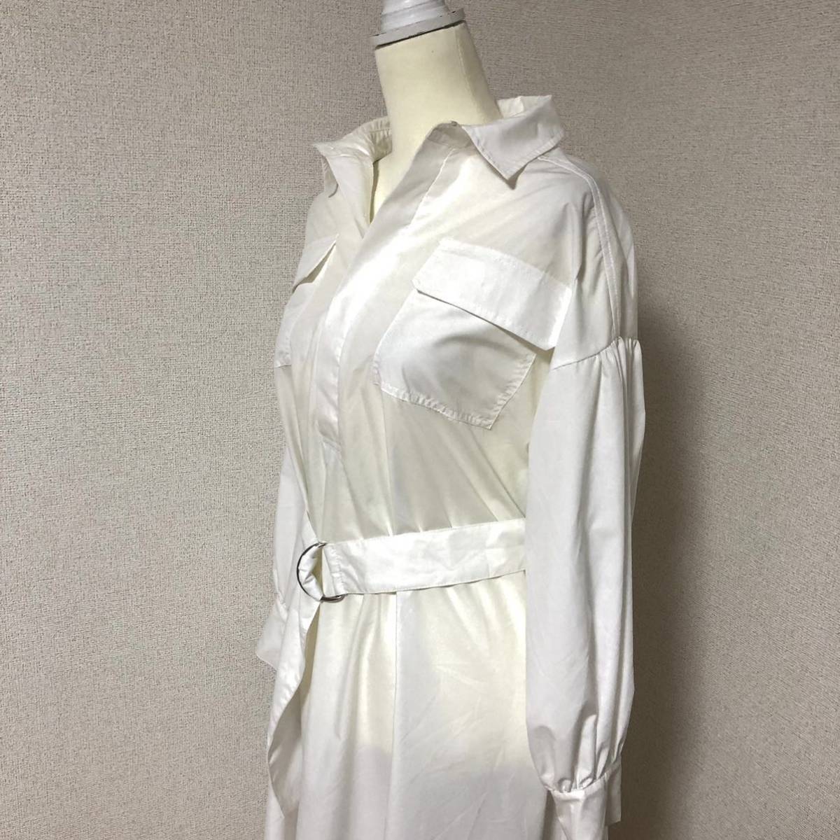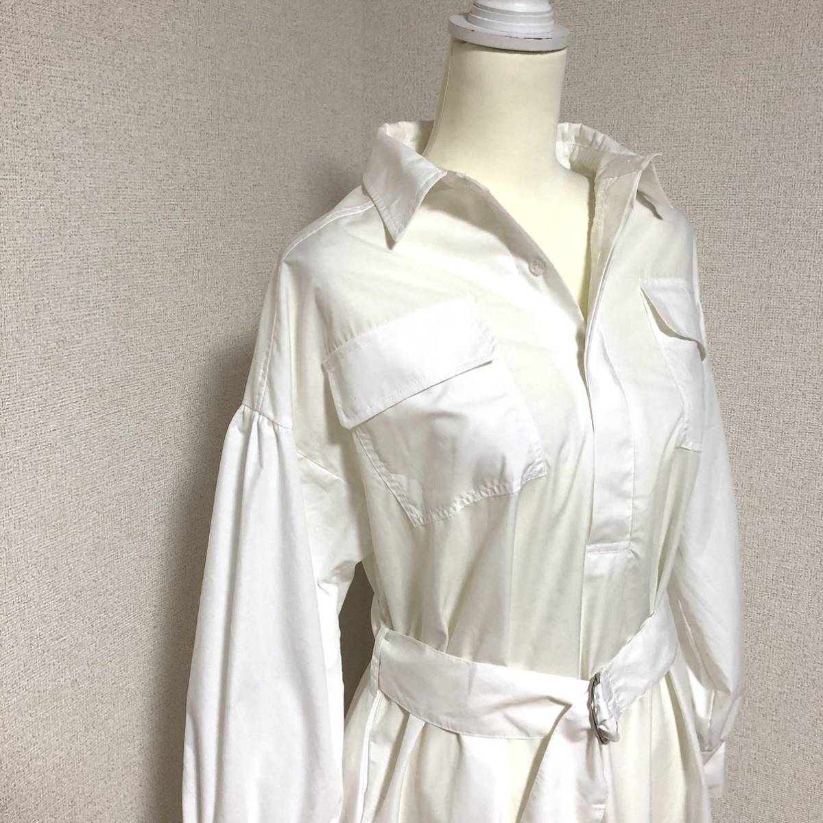 スタイリッシュなシルエットのロングシャツワンピース。同素材のベルトがついています。ボリュームある袖や、全体的にゆったりとしたサイジング、サイドポケット付きのデザインです。フロントボタンを開けて抜け感コーデがおススメです。