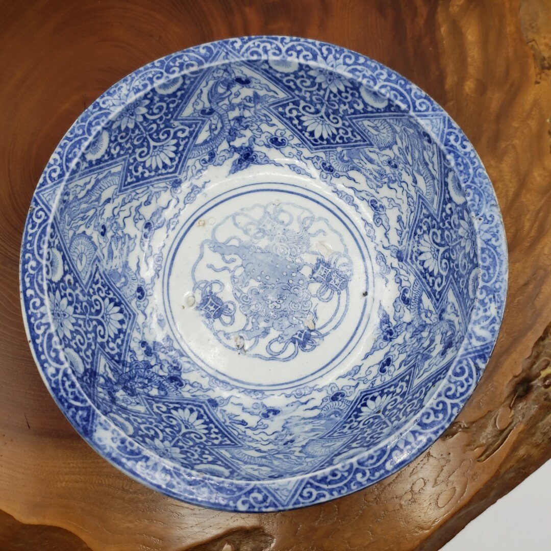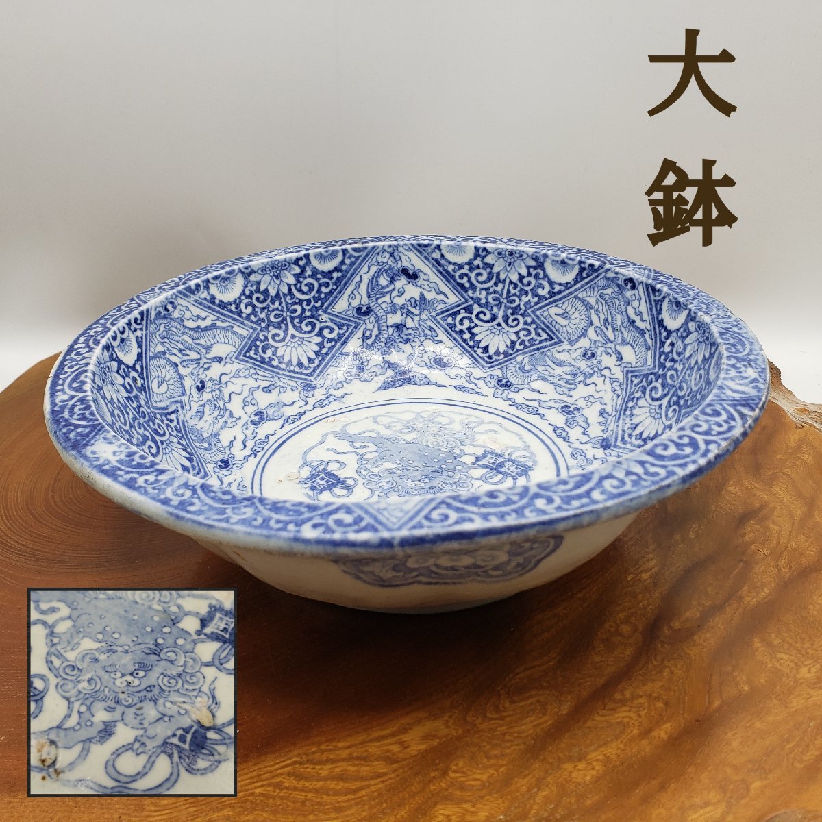 | 商品名 | 大鉢 銅板転写? 古伊万里? 直径約26cm 唐草柄 獅子 龍 転写重複 大皿 深鉢 金魚 メダカ 時代物 骨董品 年代物 | |||||||||||||||||||||||||