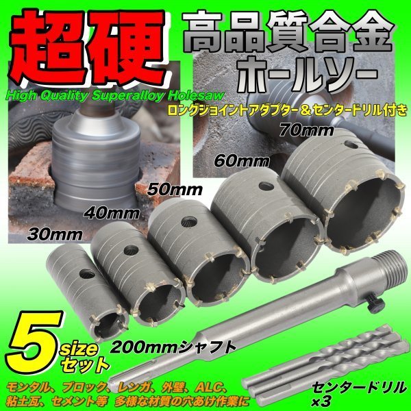 高硬度 超硬 コンクリ 穴あけ ドリル ホルソー ホールソー 5点 セット コアドリル ドリルビット 穴あけ 穴開け SDSプラス センター 工具 | |||