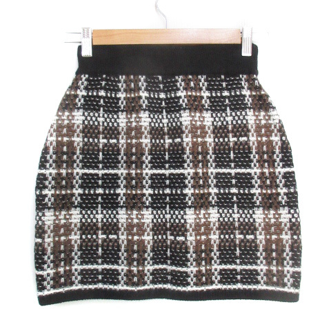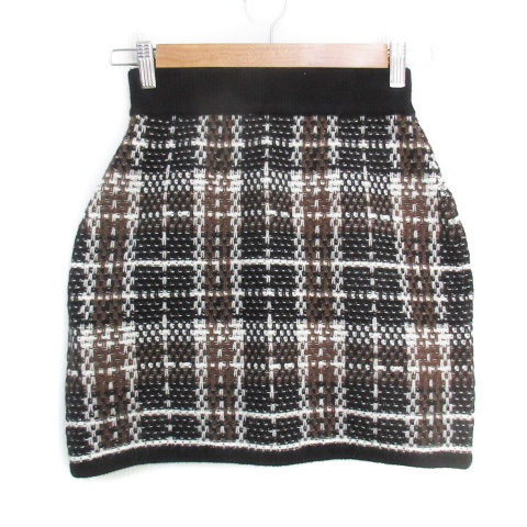ダーリッチ Darich ニットスカート タイトスカート ミニ丈 チェック柄 マルチカラー F 白 黒 ホワイト ブラック /FF48 レディース