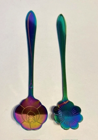 即決!綺麗な色の「花型ティースプーン」2本(B)