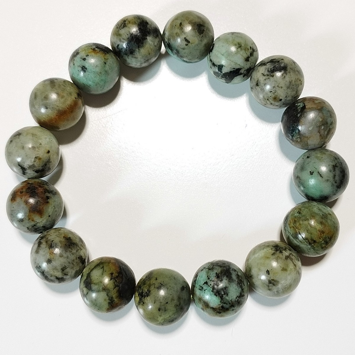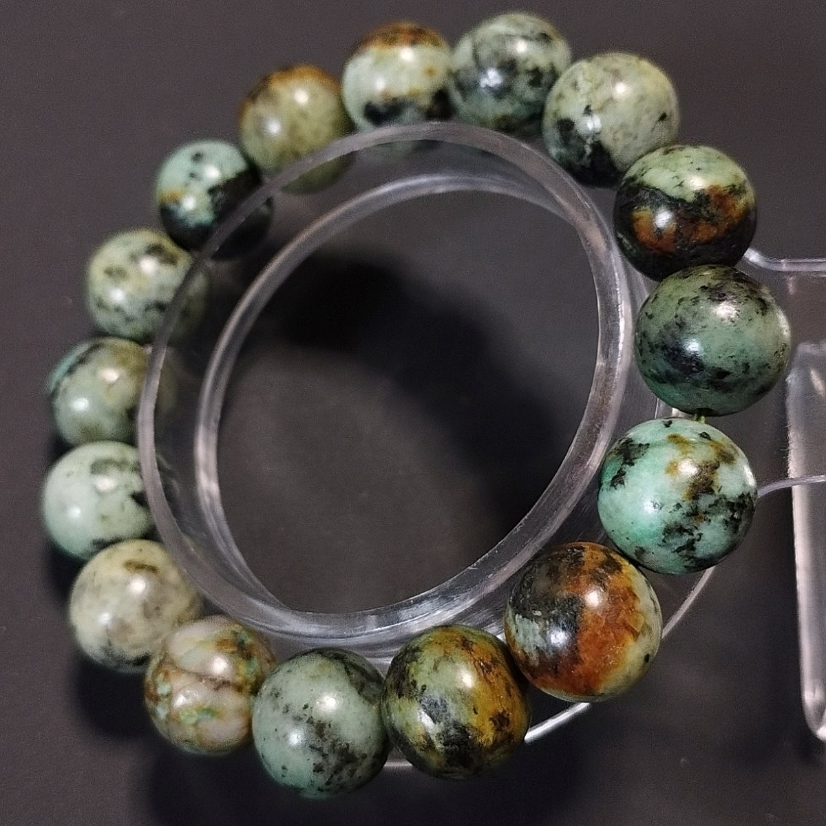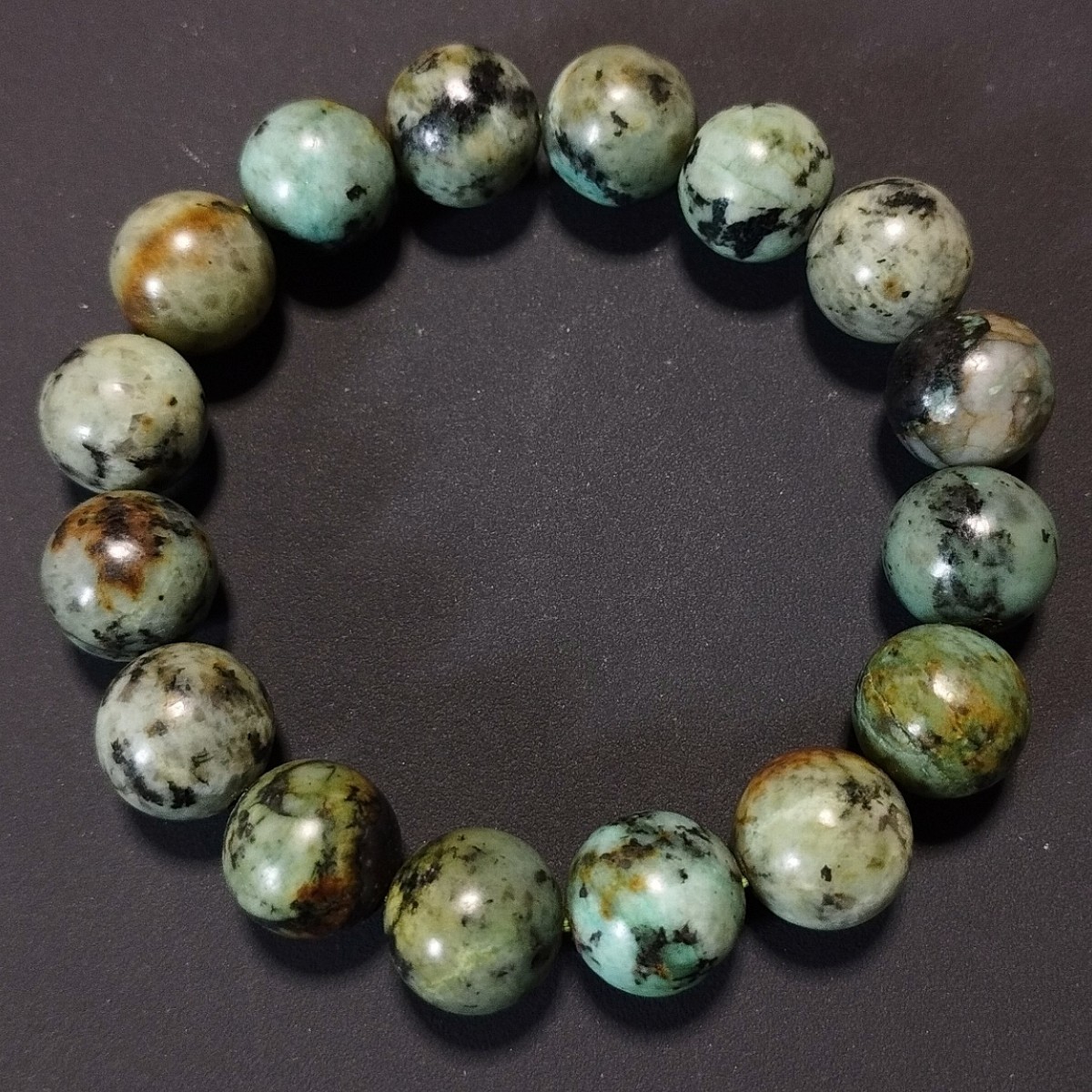 ターコイズの原石を丸珠に磨いたブレスレットです。