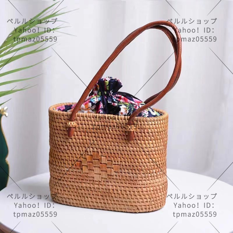 バスケット 収納かご おしゃれ藤籠 編み 取っ手 持ち手  手作りトートバスケット