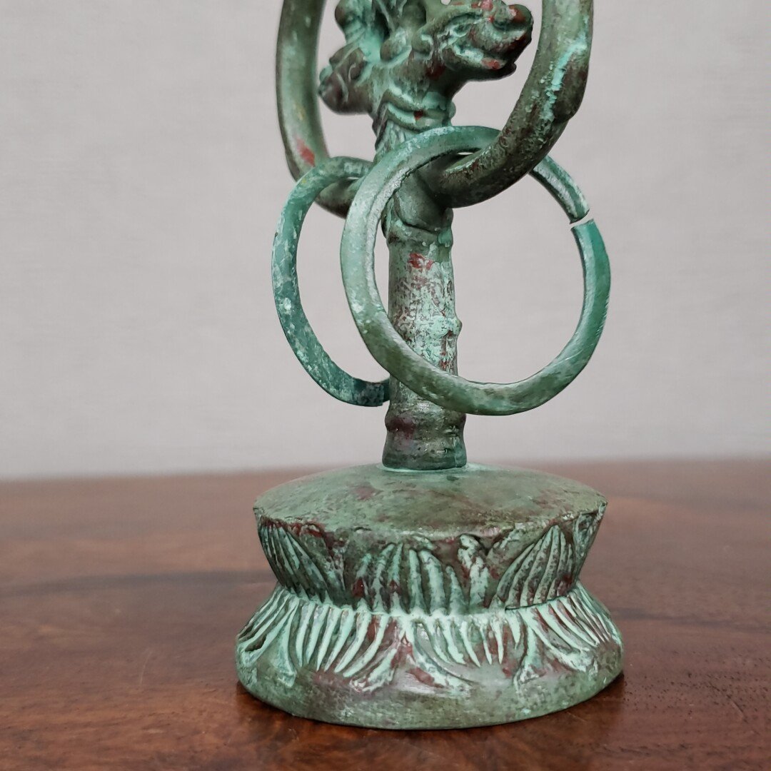 商品名 | 富山県大日岳 銅錫枝頭置物 高さ13cm 341g 双竜飾 仏具 仏教美術 重要文化財 銅製置物 錫杖 骨董 古美術品 古民具 文鎮 書道具 | |||||||||||||||||||||||||